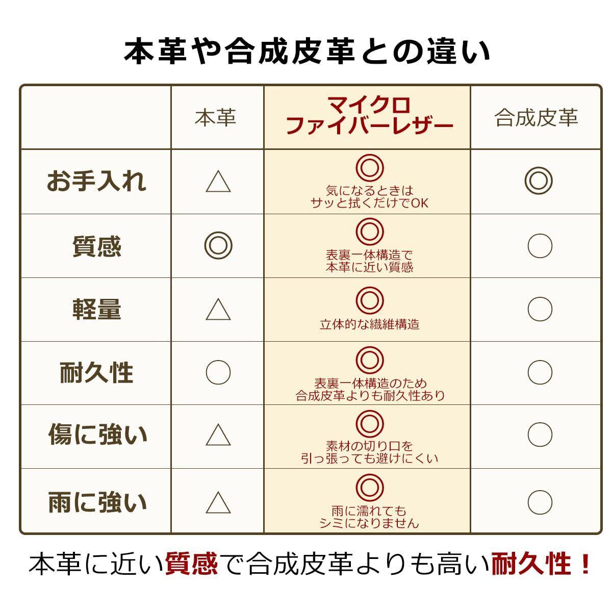 本革とは生き物の皮です。動物愛護の観点から本革と似た繊維構造を持つマイクロファイバーレザーを使用しました。科学的に天然皮革に構造を限りなく似せてつくった素材で風合いも本革に近いのが特徴です。
