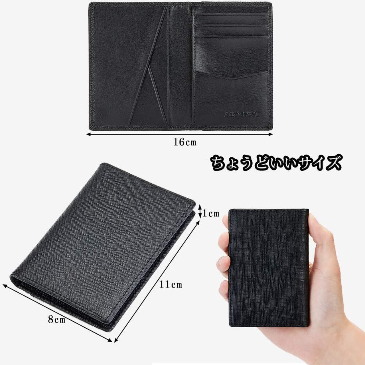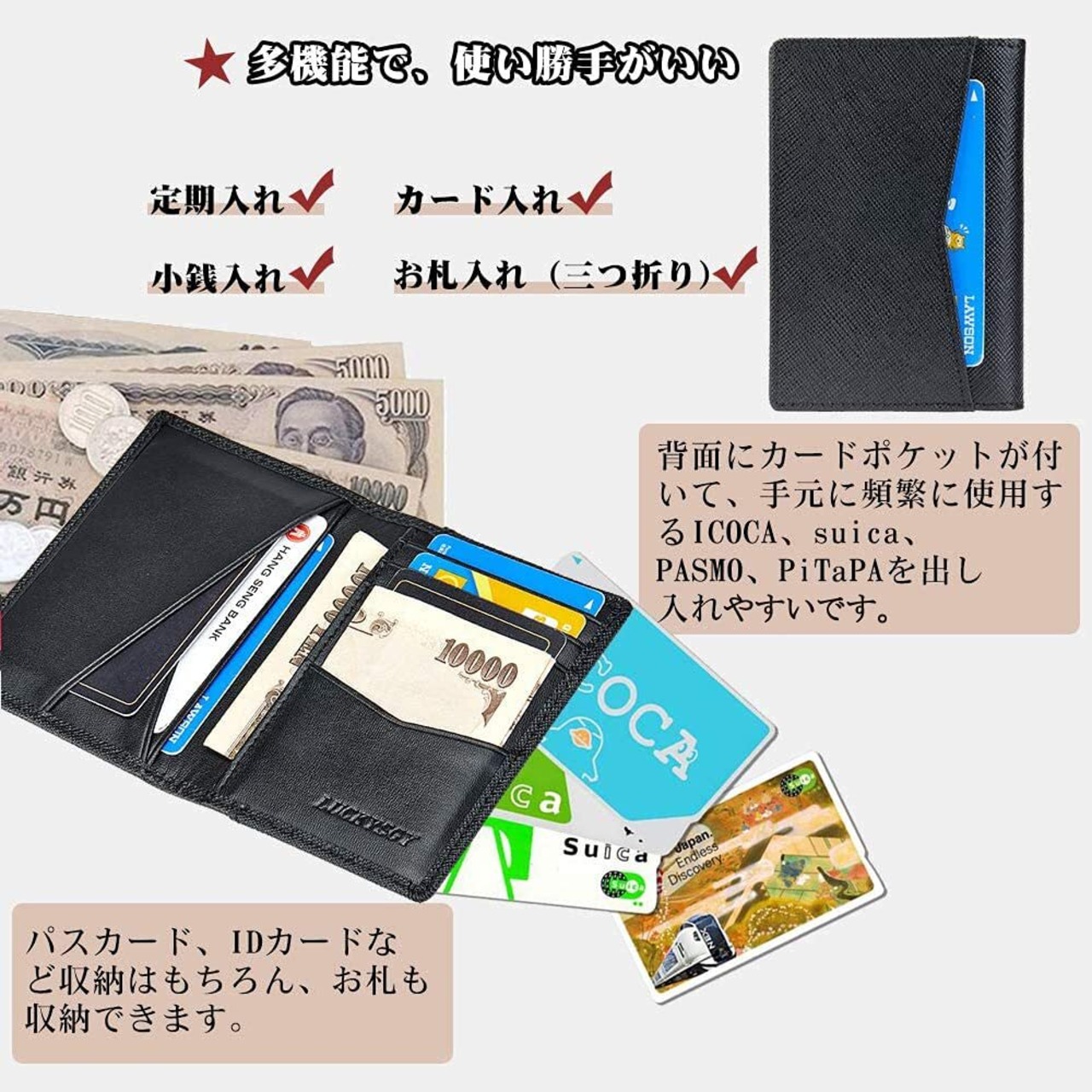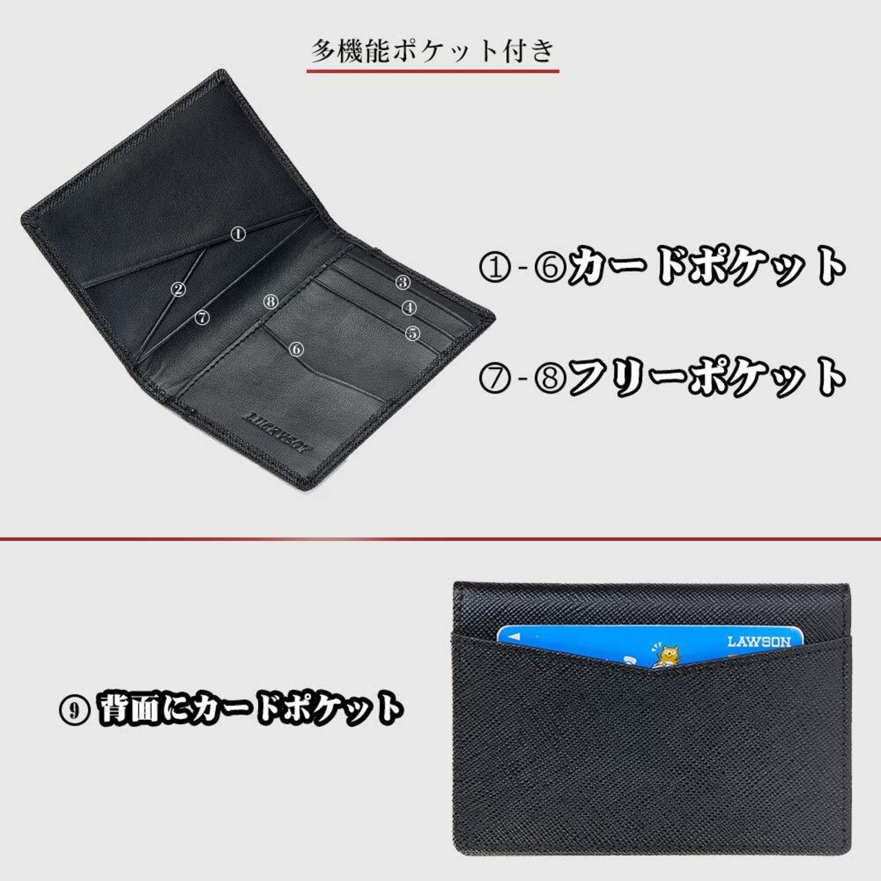 [LUCKYSGY] 定期入れ メンズ 本革 パスケース 二つ折り カードケース 薄型 カード9枚収納 男女兼用 プレゼント用 化粧箱付き 型押しブラック