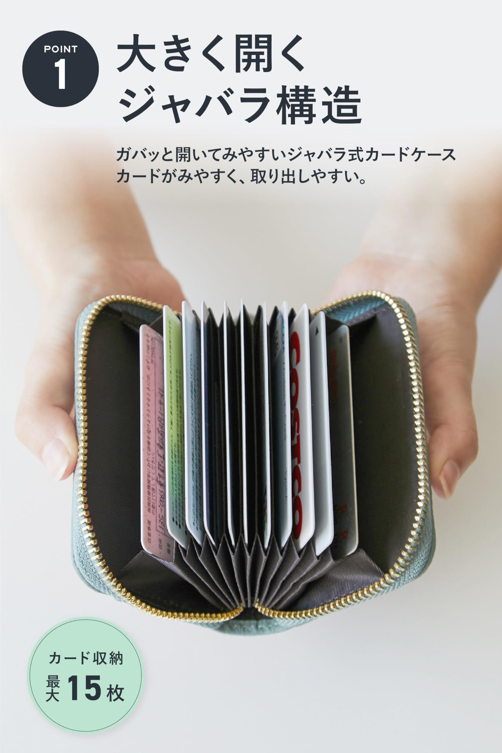 【大容量収納】カード最大16枚収納可能。ありとあらゆる場所に散りばめられたカードを一つに集約。取り出しやすさと見やすさを優先し、じゃばら式を採用。