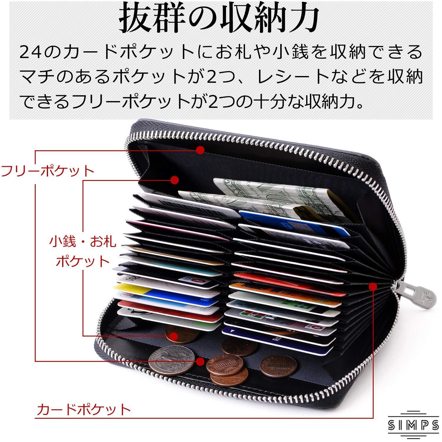 【SIMPS】カードケース 大容量 カード入れ スキミング カードホルダー クレジットカード ポイントカード 名刺入れ カード収納 牛本革 じゃばら 磁気防止 48枚収納 メンズ レディース 専用化粧箱