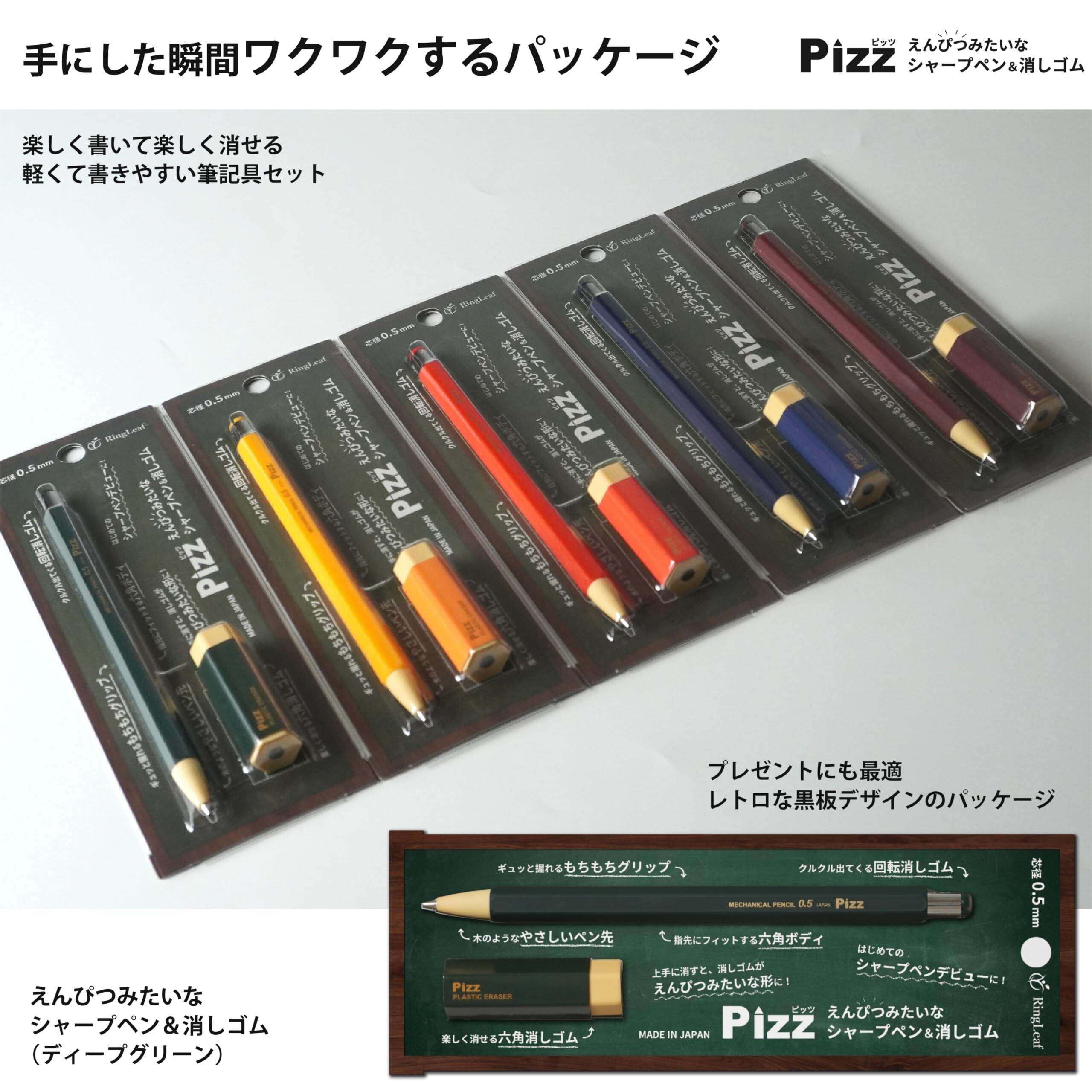 Pizz(ピッツ) えんぴつみたいなシャープペン&消しゴム ギュッと握れる全面ラバー仕上げ | 日本製 0.5mm [ディープグリーン]