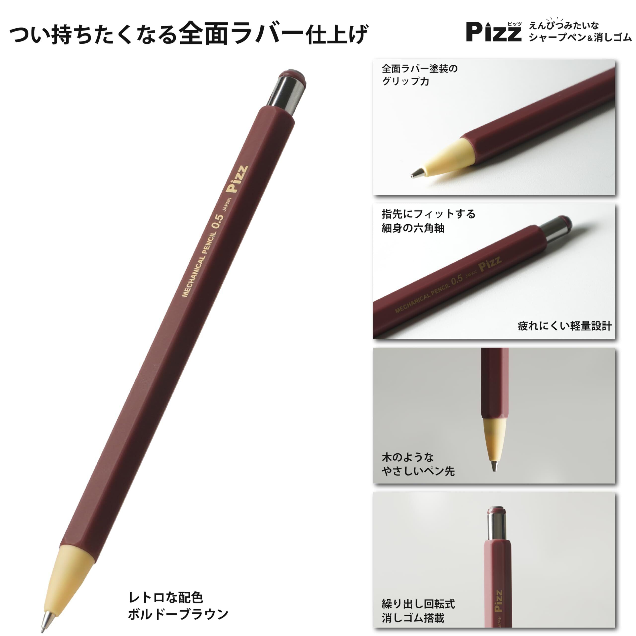 Pizz(ピッツ) えんぴつみたいなシャープペン&消しゴム ギュッと握れる全面ラバー仕上げ | 日本製 0.5mm [ボルドーブラウン]