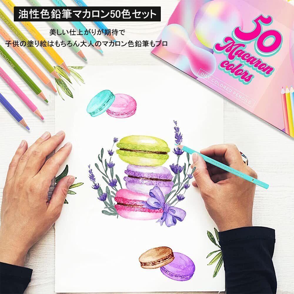 Roleness マカロン 色鉛筆 油性 50色 子供 大人 塗り絵 色鉛筆セット 油性色鉛筆 画材セット 美術 描き用 プレゼント 絵の具 いろえんぴつ 鉛筆削り付き