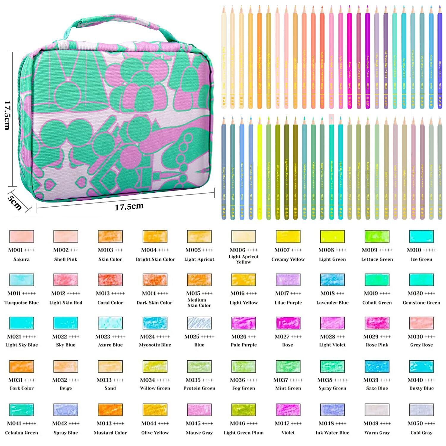 Roleness 色鉛筆 マカロン 50色 油性色鉛筆 プロ 子供と大人 塗り絵 色鉛筆セット 柔らかい芯 画材セット 消しゴム 鉛筆削り 塗り絵 収納ポーチ付き