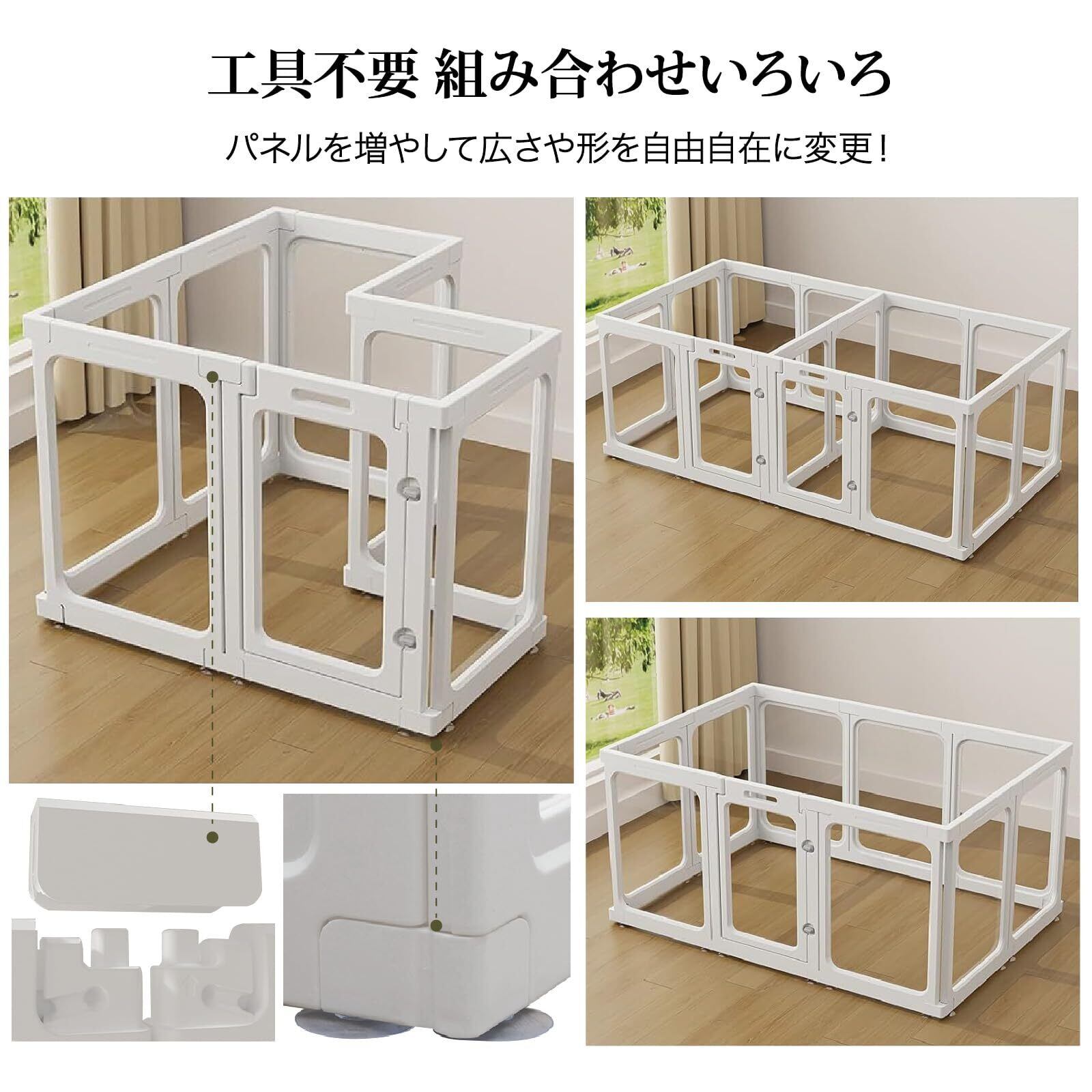 【工具不要!組み合わせ自由自在】パネルが拡張・分離・連結可能なので、サークルに仕切りを作ることによって、遊んだり、寝たりするスペースやトイレスペース、ペットのオモチャ置き場など、パネルの枚数を増やして自由な形にカスタマイズできるところも便利で魅力的!