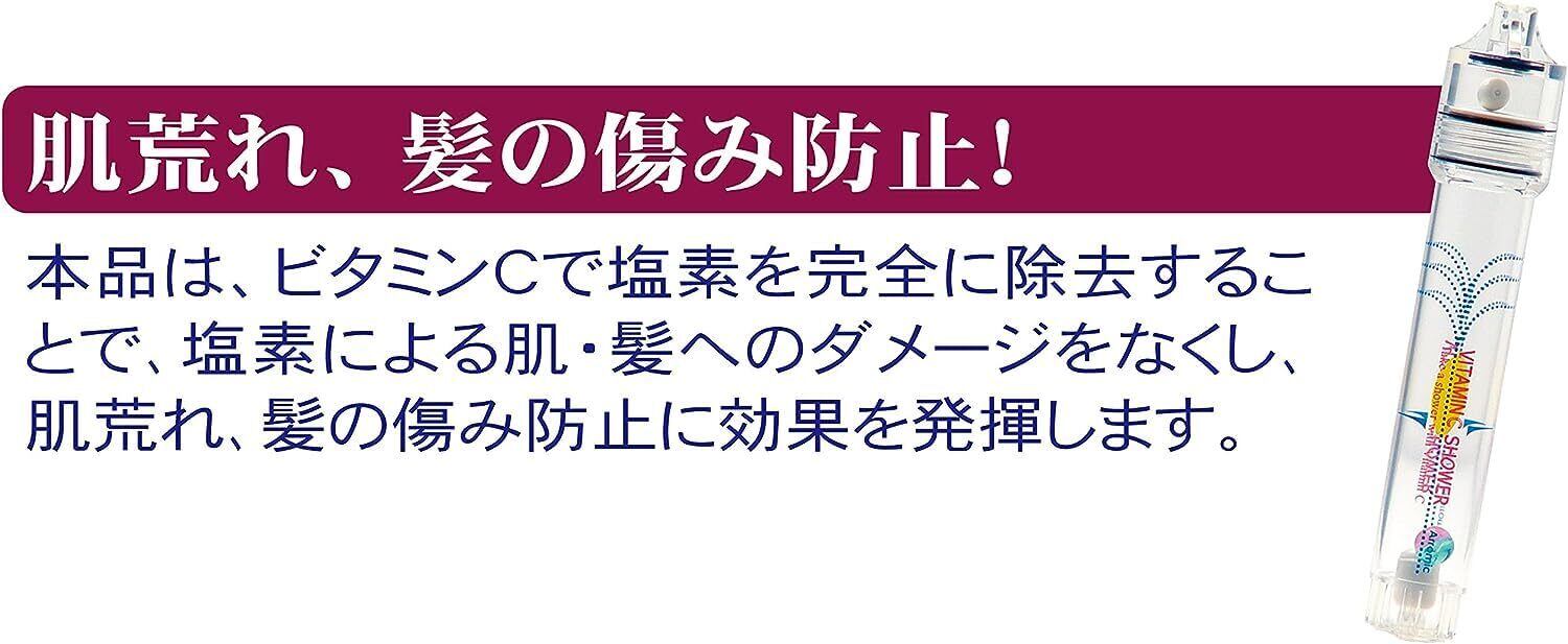 ビタミンCの効果で、肌や紙にダメージを与える塩素を除去。肌荒れや髪の痛みが気になる方や、乳幼児にお勧めです