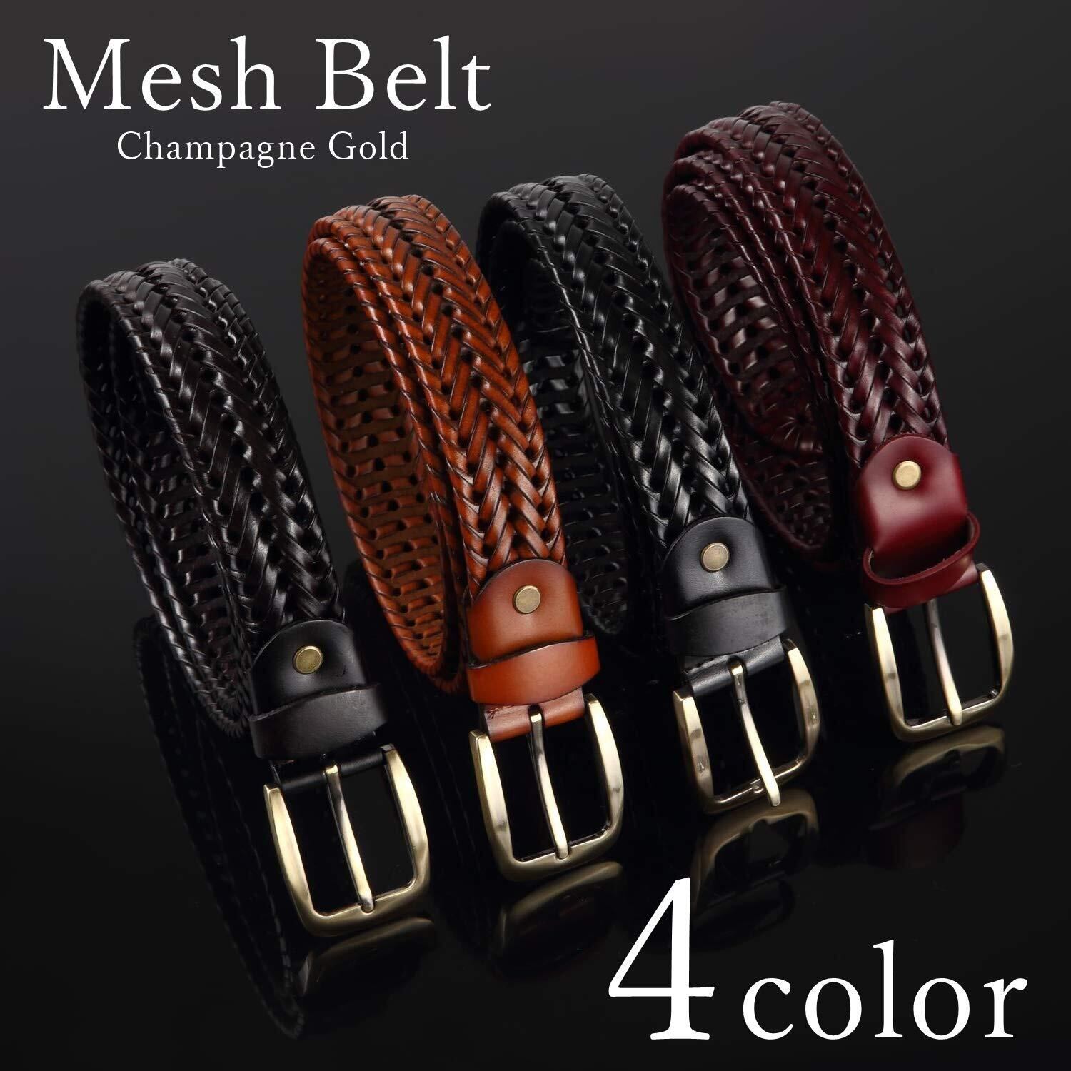 【特価商品】【ドイツレザー本物の1本】 JINSELF メッシュ ベルト メンズ 革 バックル カジュアル ビジネス 編み込み ゴールドバックル
