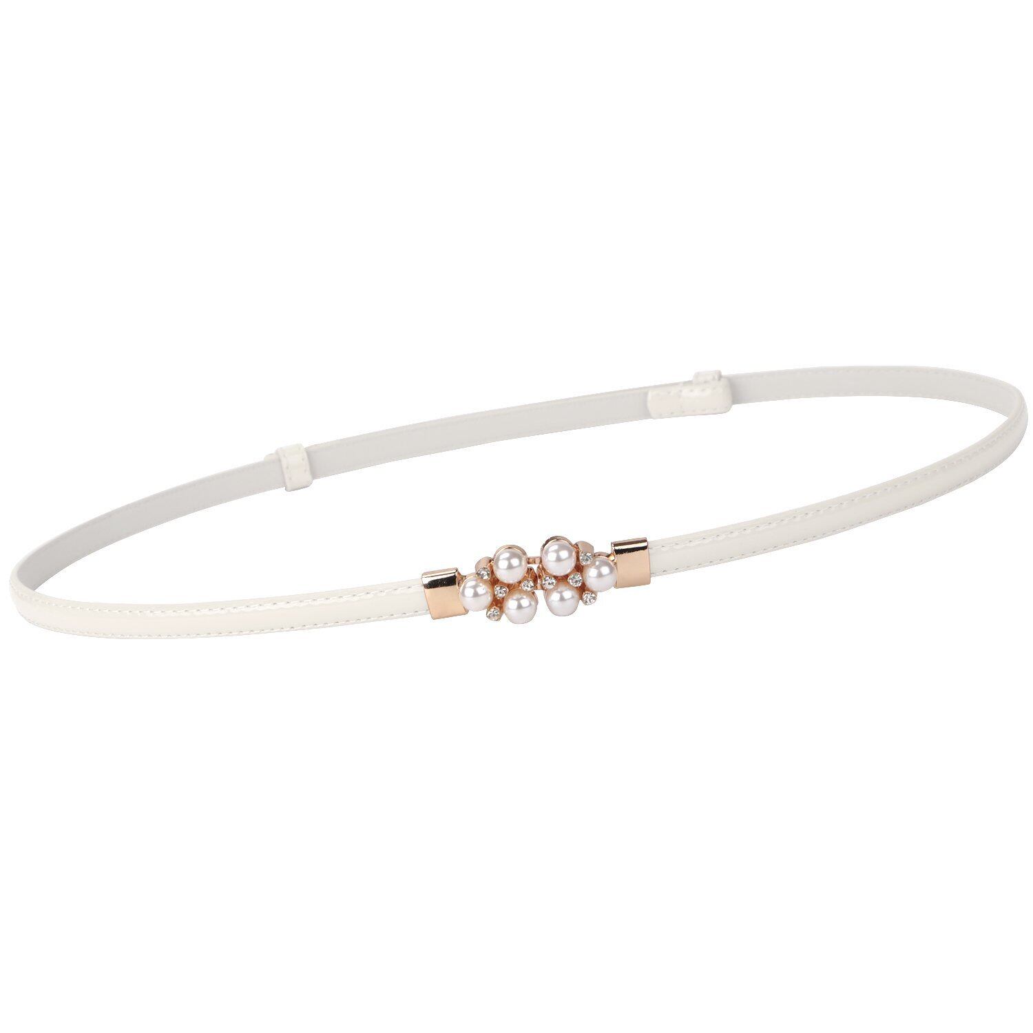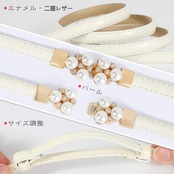 デザイン:上品な華やかさがさり気ないワンポイントがお洒落度をアップ。ゴールバックルにパール装飾が女性らしさをプラスさてお呼ばれから普段まで楽しめる細ベルトです。