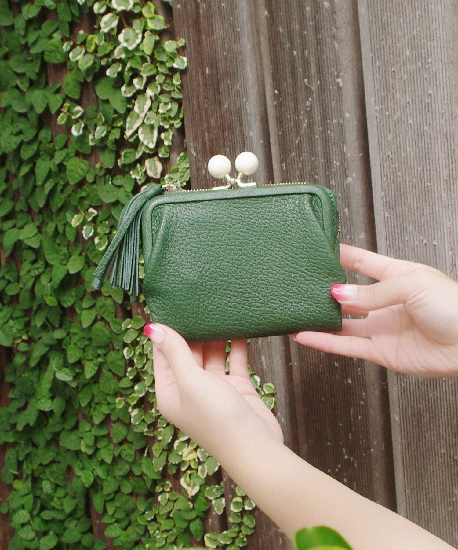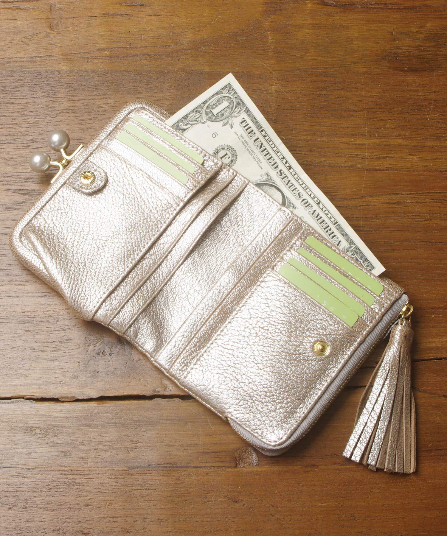 がま口部分のアクリル玉がかわいい2つ折り財布。