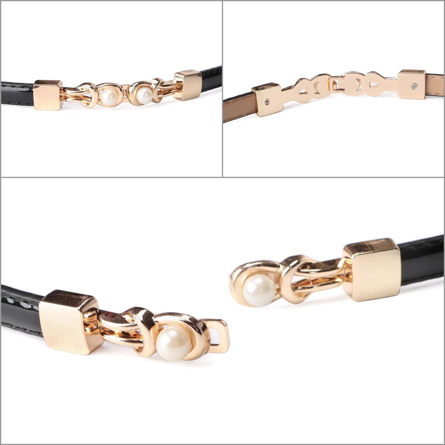 [JASGOOD] 細ベルト レディース スカートベルト エナメル ウエストマーク スライドベルト パール パーティ ウェディング 結婚式 ドレス ワンピース コーデ サイズ調整可能(ジャスグッド) ブラック