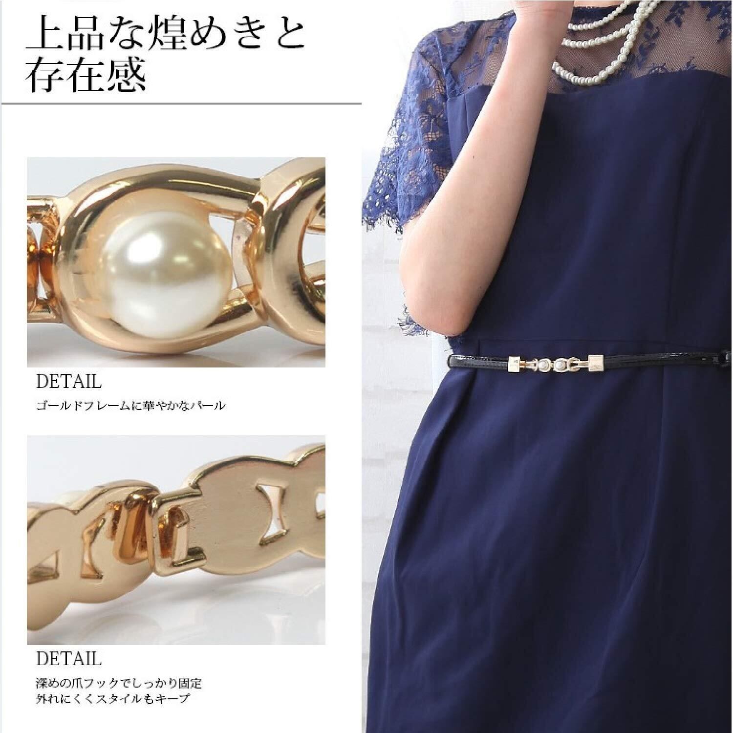 デザイン:上品な華やかさがさり気ないワンポイントがお洒落度をアップ。ゴールバックルにパール装飾が女性らしさをプラスさてお呼ばれから普段まで楽しめる細ベルトです。