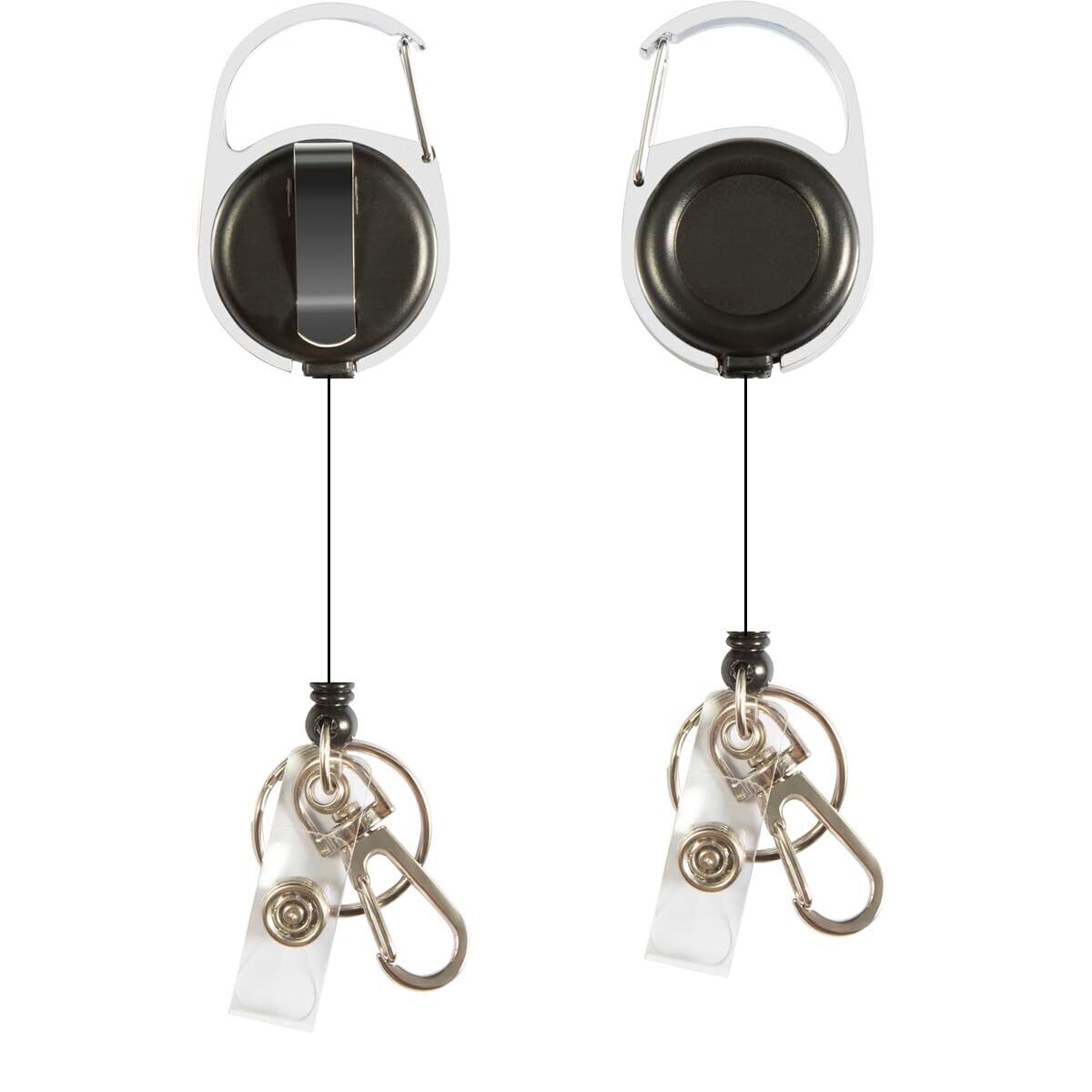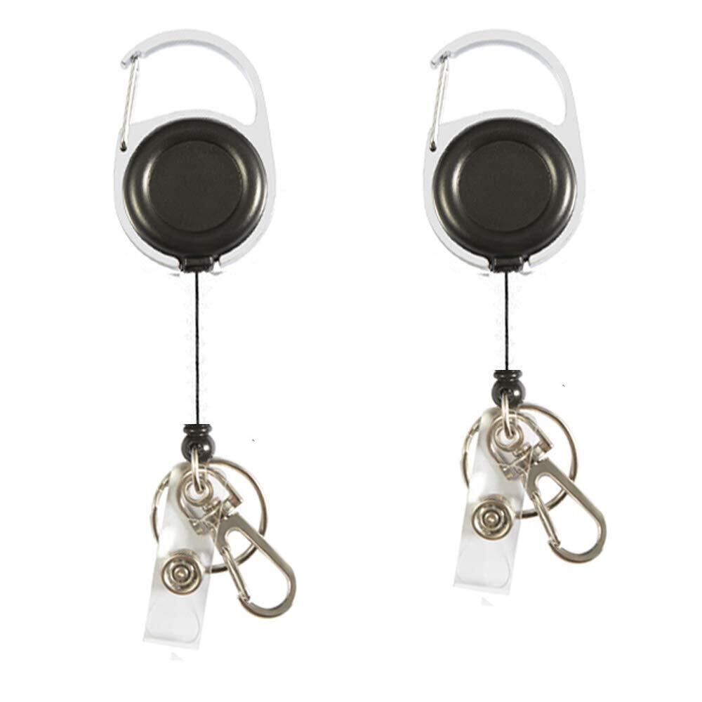 【在庫処分】吊り下げ名札用リール リールクリップ キーホルダー 伸びる 2個入 名札 リール リールホルダー リール 伸びるストラップ リコイルリング カラビナ・クリップ付き 定期入れ・パスケース用 最長63cm IDカードホルダー用 黒 | asaRulu0511
