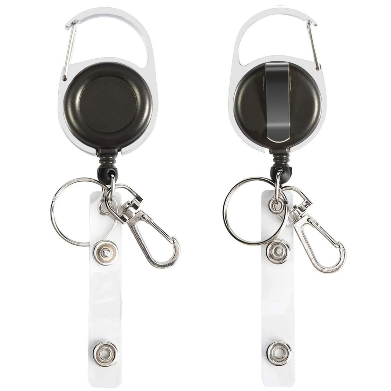 吊り下げ名札用リール リールクリップ キーホルダー 伸びる 2個入 名札 リール リールホルダー リール 伸びるストラップ リコイルリング カラビナ・クリップ付き 定期入れ・パスケース用 最長63cm IDカードホルダー用 黒