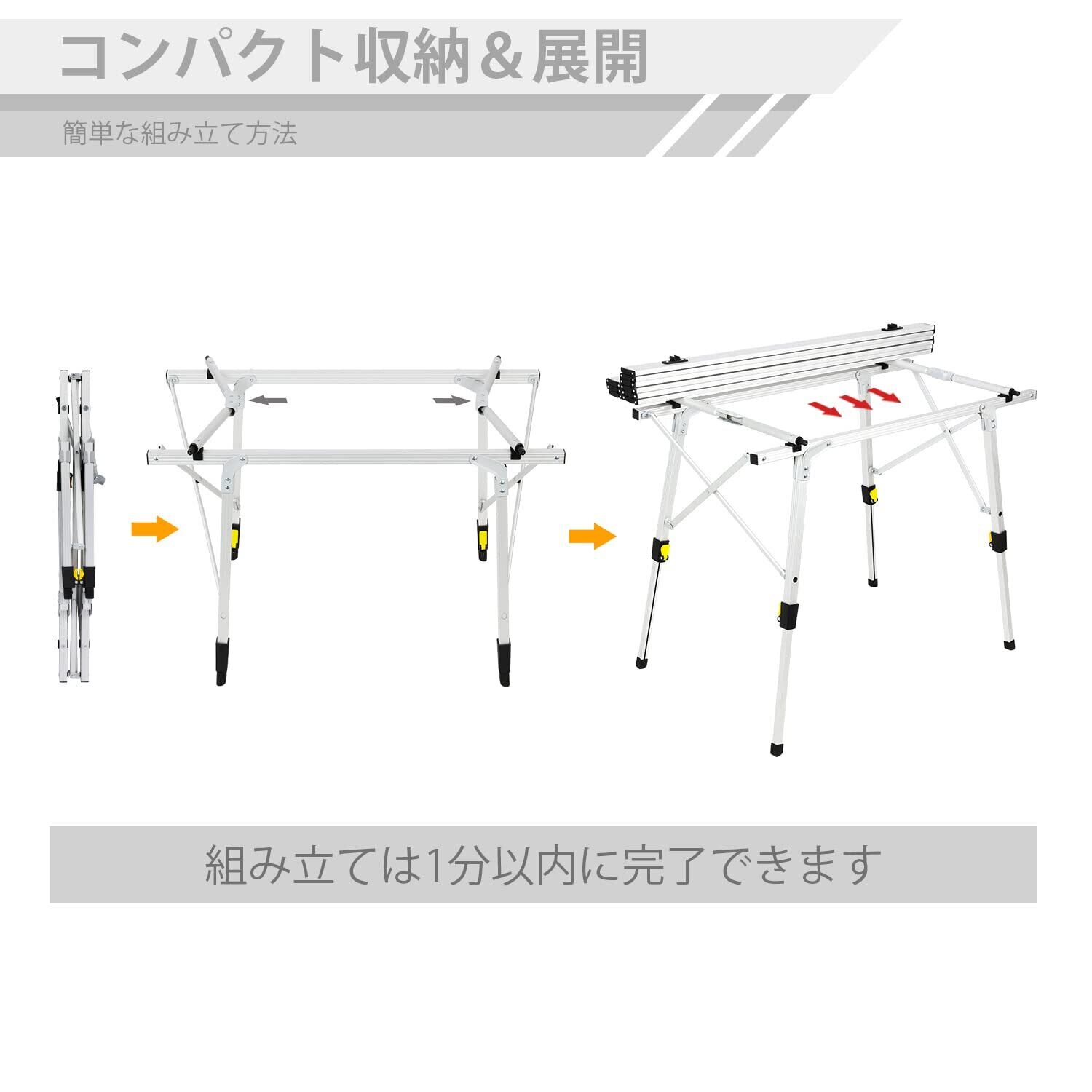 ●【組み立てはらくらく】①、ロールテーブルのフレームは簡単な収束式タイプなので、女性一人でも気軽に間もなく広げや収納できます! ②、天板の各部分は通常の老化しやすい弾力ロープの代わりに、複雑なネイルデザインで接続されています。手を天板の中に巻き込まれなく、耐久性、安定性もたっぷり!