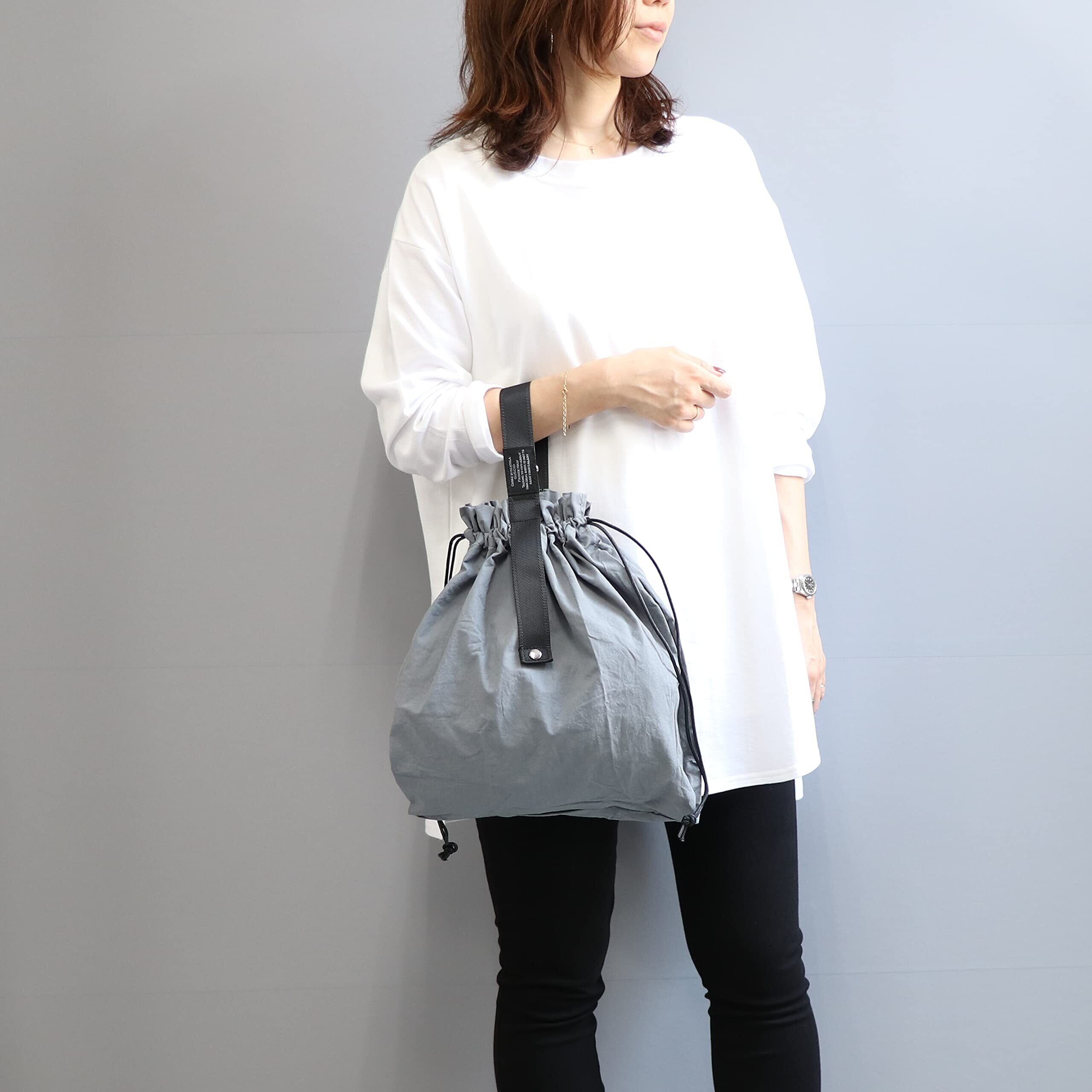 【グッシオ】巾着型 エコバッグ コンパクト収納 コンビニサイズ 綿麻素材 カジュアルコーデ 手提げ×肩掛け 2WAY仕様 折りたたみ 携帯便利 おしゃれ125012