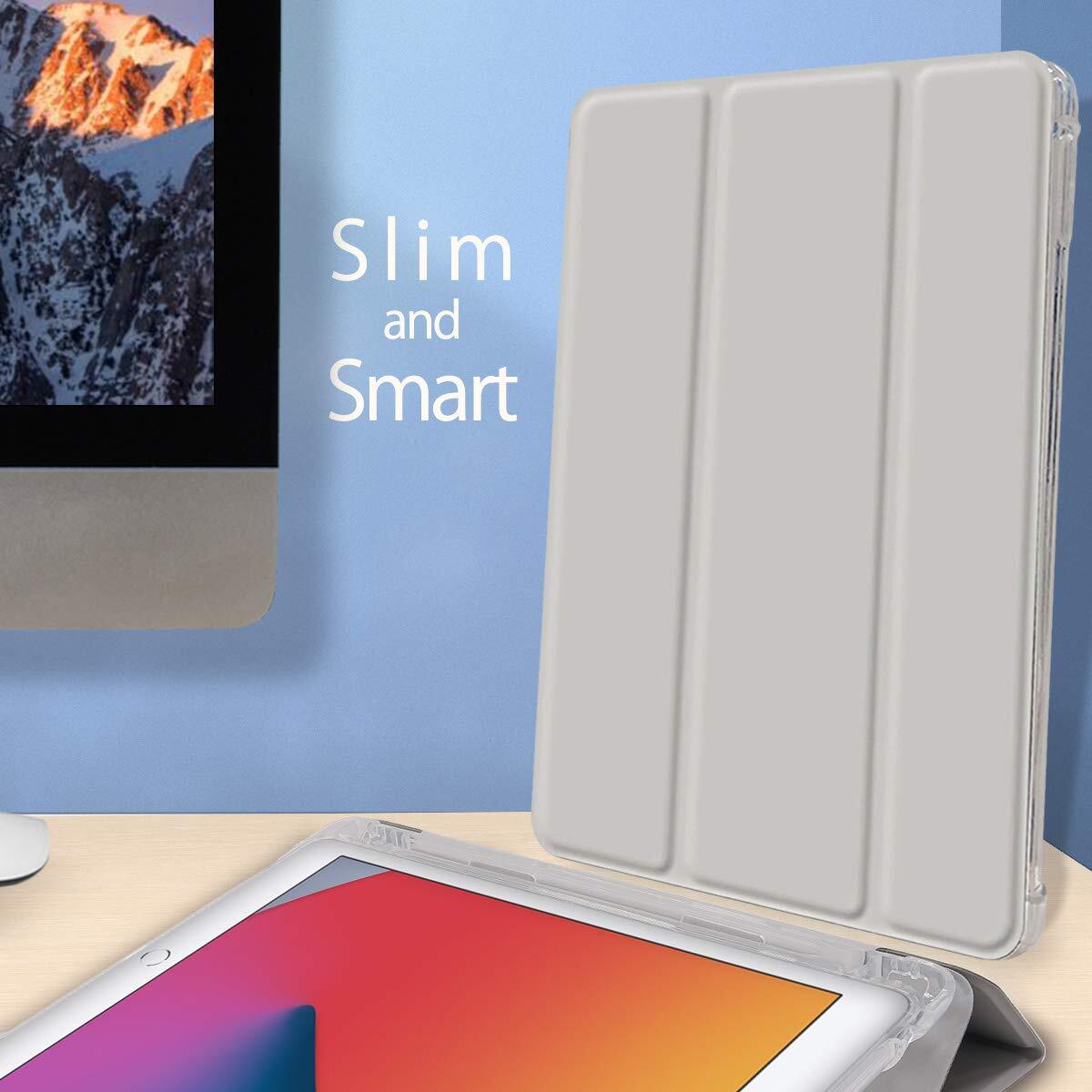 MS factory iPad 9世代 ケース 第9世代 第8世代 第7世代 用 アイパッド 10.2 カバー 耐衝撃 ペン収納 軽量 衝撃吸収 半透明 オートスリープ スタンド ライト グレー IPD-7-S-CLH-LGY