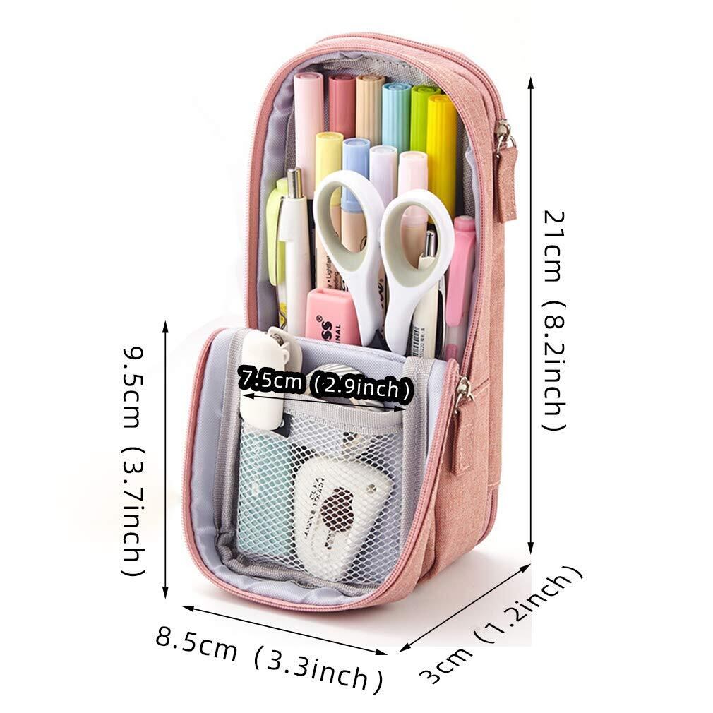 【特価セール】iSuperb ペンケース 筆箱 筆入れ ペン立て 大容量 おしゃれ 多機能 小学生 中学生 文具ケース 小物収納 学生用 文具バッグ 成人祝い 誕生日 進学 新学期 ブラック ブルー ピンク (ピンク/二層) | asaRulu0511