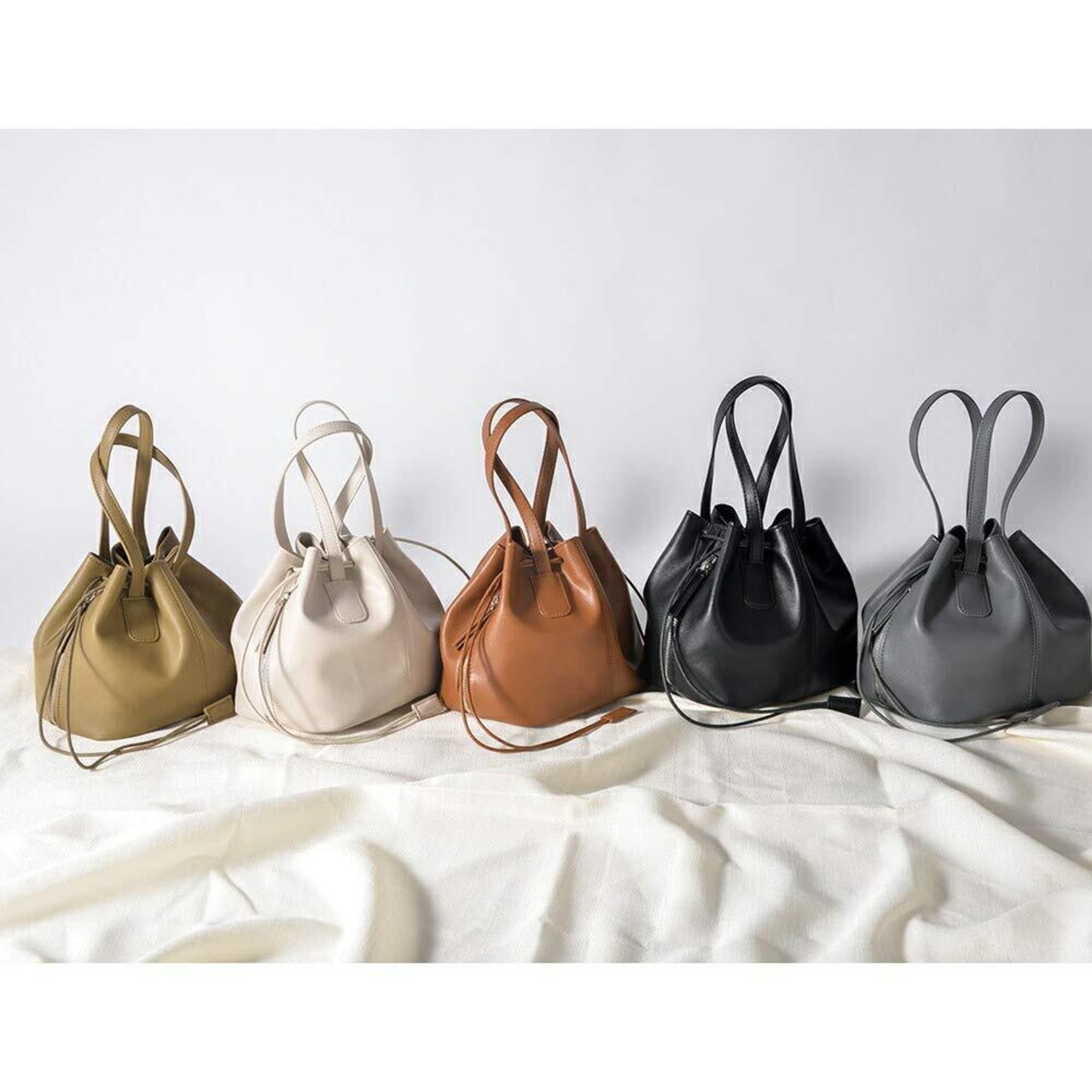 5色展開が嬉しい!シンプルな3WAY巾着バッグ! ■デザイン■ 秀逸なシルエットのシンプルなボディに 巾着型の立体的な形状とヴィンテージな雰囲気の ドローコードが他とは一線を画す、 洗練されたトートバッグ! 肩にかけられる長さの持ち手はショルダーバッグ のように使い勝手も◎ ■スペック■ コンパクトなルックスながら、 長財布やペットボトルが しっかり入る大容量の収納力! A4サイズ対応でデイリーユースにピッタリ! 大きく開くから、よく使うモノの出し入れも簡単 内装には2層式の内ポケットやジップ付きのポケット キーリングも搭載されていて 小物の整理整頓もバッチリ! ■素材感■ 本革のような手触りの良い柔らかな質感が特徴の 高品質なソフトフェイクレザーを使用! 野暮ったくならず、 スタイリッシュな印象に! ■着用感■ ショルダーロープは自由に調節でき、 肩掛け、斜め掛け、手持ちと 3wayで様々なコーディネートに対応! ドローコードの結び方をアレンジして、 バッグの表情を変化させる事ができる! 男女兼用で使えるのもポイント! 普段使いはもちろんのこと、 結婚式などの冠婚葬祭でも対応可能! ドレスからカジュアル、 メンズからレディース、 様々な場面で大活躍の巾着バッグ!