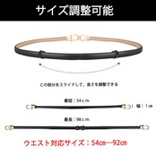 「全長:54cm-98cm(サイズ調整可能)」 「ベルト幅:1cm」 「ウエストサイズ:54cm-92cm」