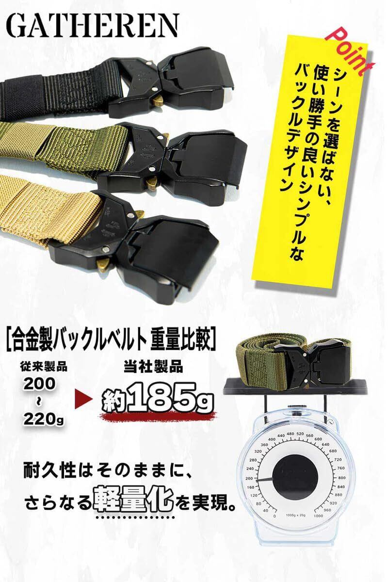 [GATHEREN] タクティカルベルト サバゲーベルト ミリタリーベルト ワンタッチベルト 作業用ベルト 腰袋 ベルト 軽量型 フリーサイズ