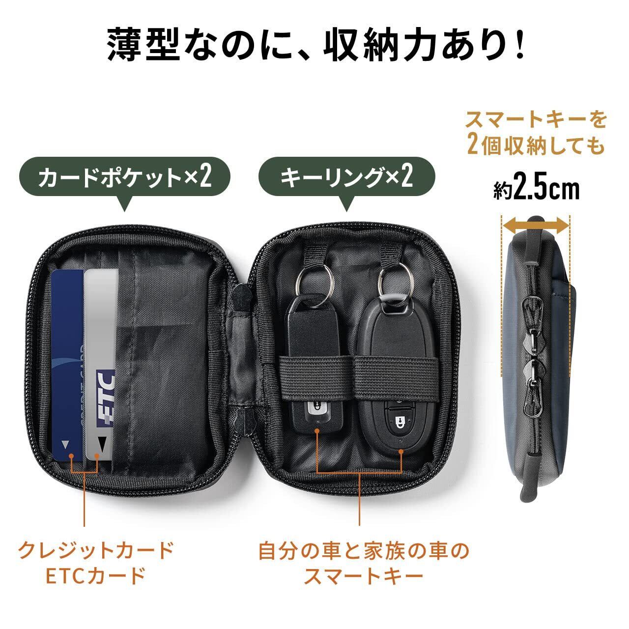 [サンワダイレクト] スマートキーケース スマートキー 2個収納 カード2枚収納 防水 防塵 止水ファスナー キーリング付属
