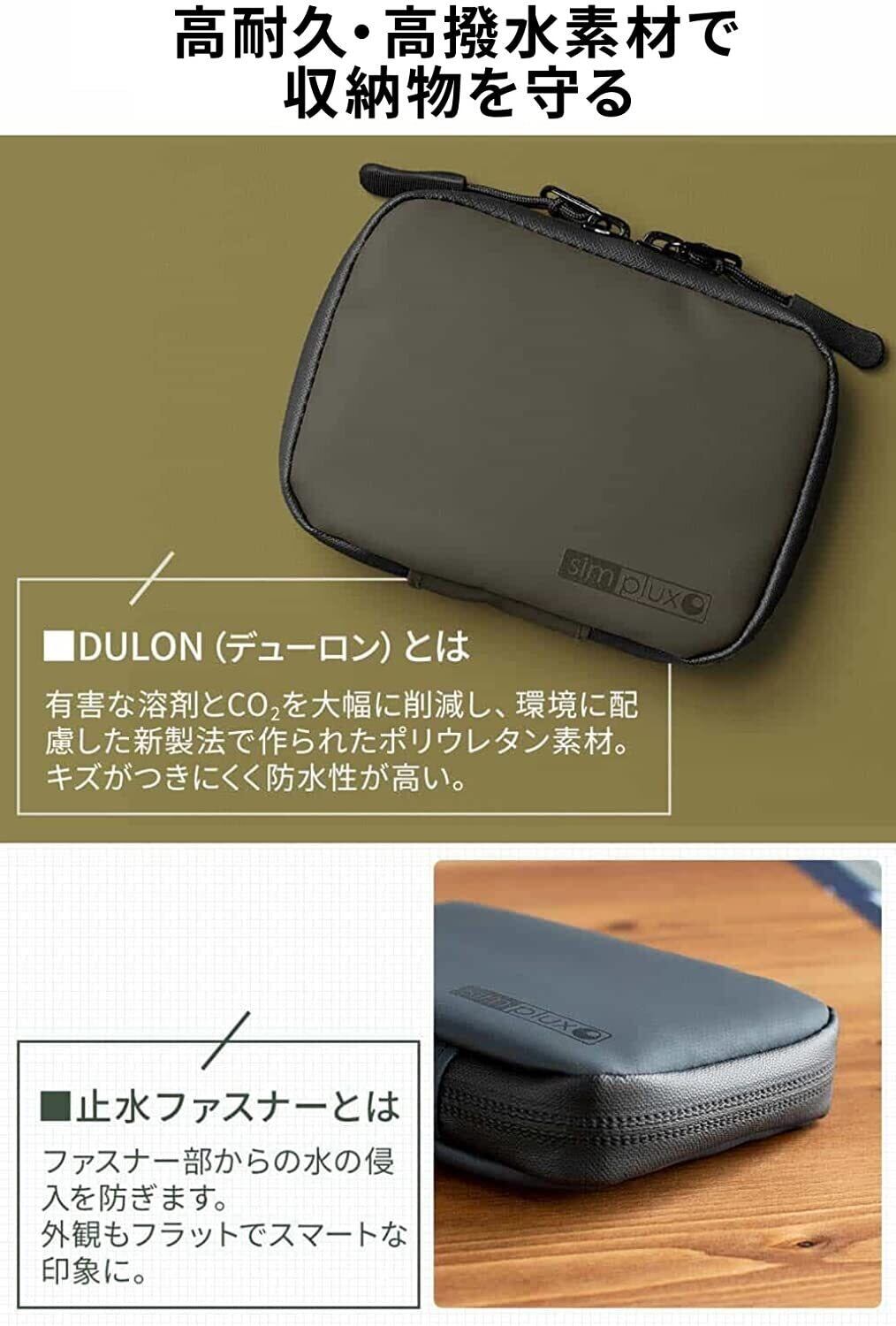 傷が付きにくく 防水 性の高い素材生地「DULON(デューロン)」を使用しています。ファスナー部分は水の侵入を防ぐ 止水 ファスナーを採用しています。シャッターリモコンやエンジンスターターなどの機器も収納が可能です。ファスナーは開閉しやすいダブルファスナーです。
