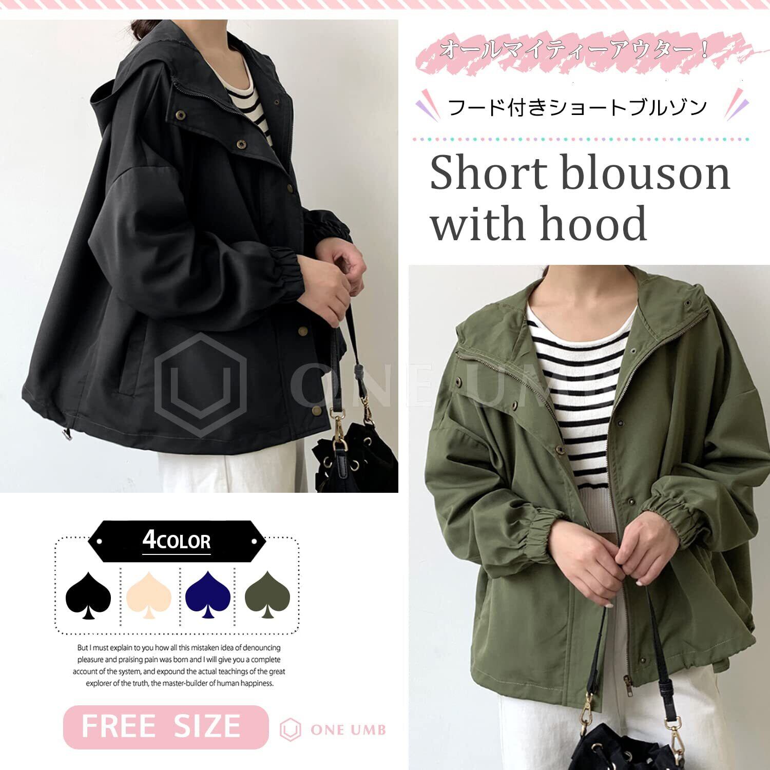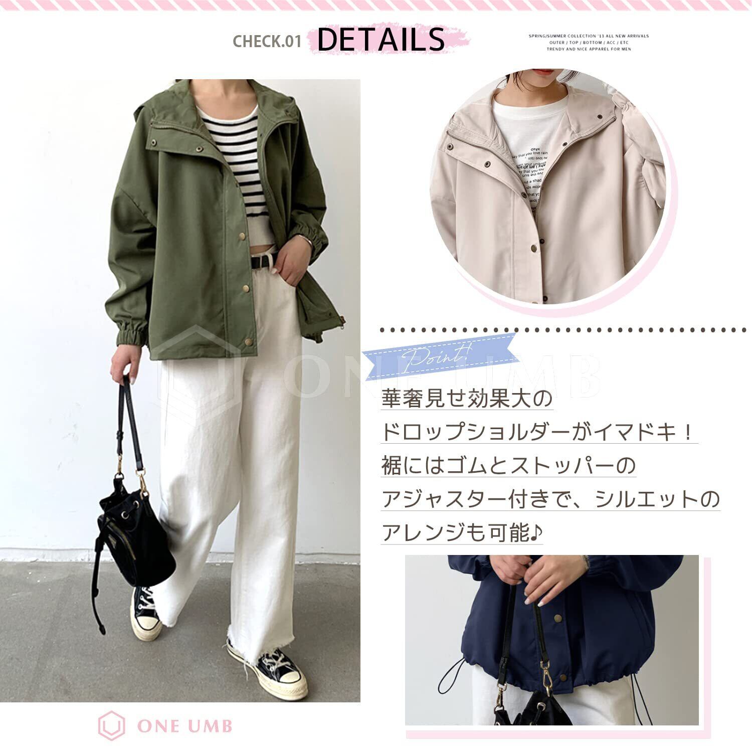 大人可愛いフード付きショートブルゾン! 華奢見せ効果大のドロップショルダーがイマドキ!大人のカジュアルスタイルにピッタリのショートコートです。 軽くてコンパクトなので持ち運びにも便利です。春秋の肌寒い日のお出かけでも安心。 裾にはゴムとストッパーのアジャスター付きで、シルエットのアレンジも可能 どんなアイテムともマッチするコーディネートのしやすが魅力です。
