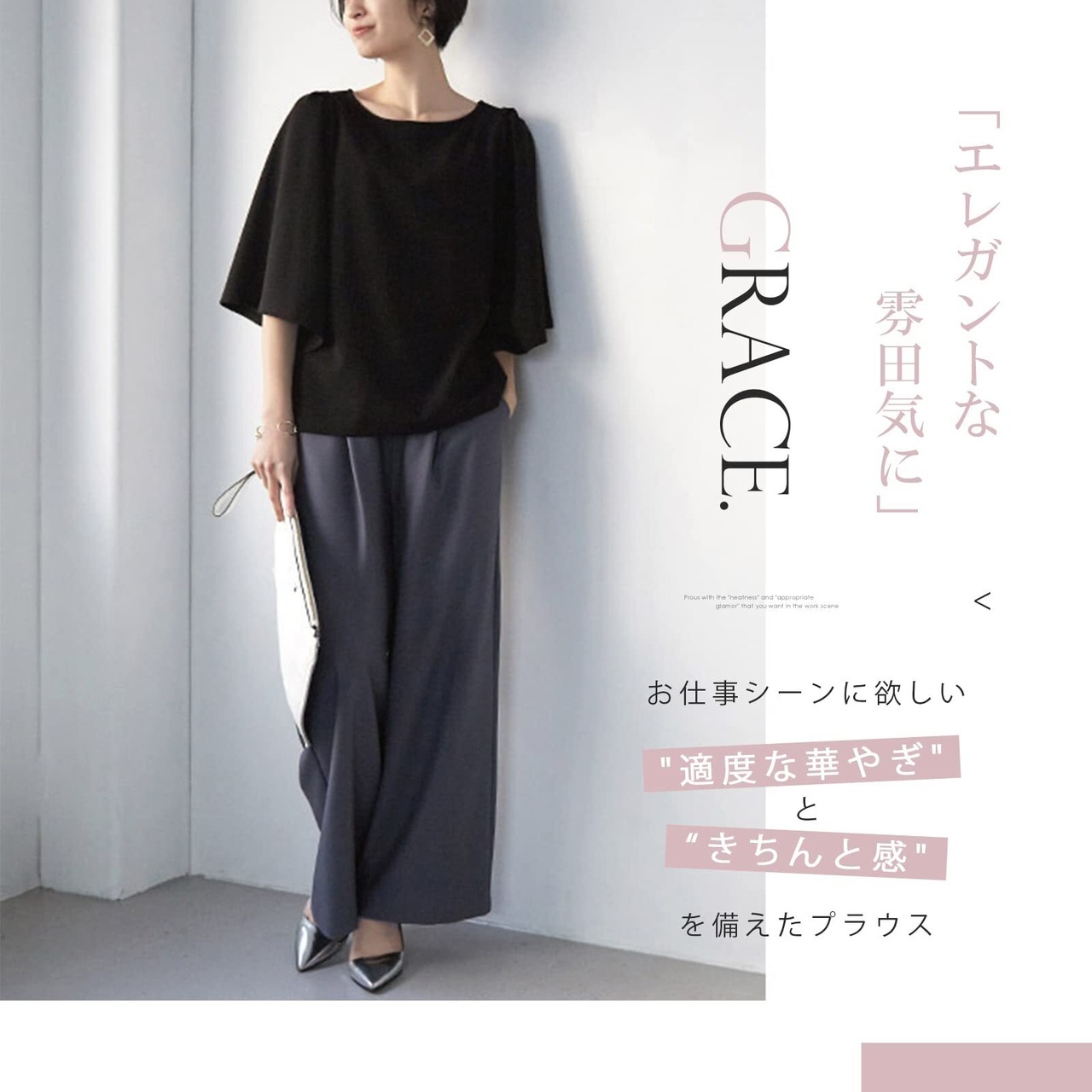 【大人可愛いブラウス】お仕事シーンに欲しい きちんと感/ と/ 適度な華やぎ/ を備えたプラウス。ホワイト、ブラック、ピンクのお洒落な3色をご用意しており、合わせるボトムやベストを選ばない絶妙な丈感で使い勝手抜群。クラシカルなボリュームを味方に、オンコーデを洗練。無地でシンプルなブラウスで洗練された大人しい印象を作り出し、デイリーにもオフィスにも一枚でコーデが広がります。春夏に欠かさないシャツ。