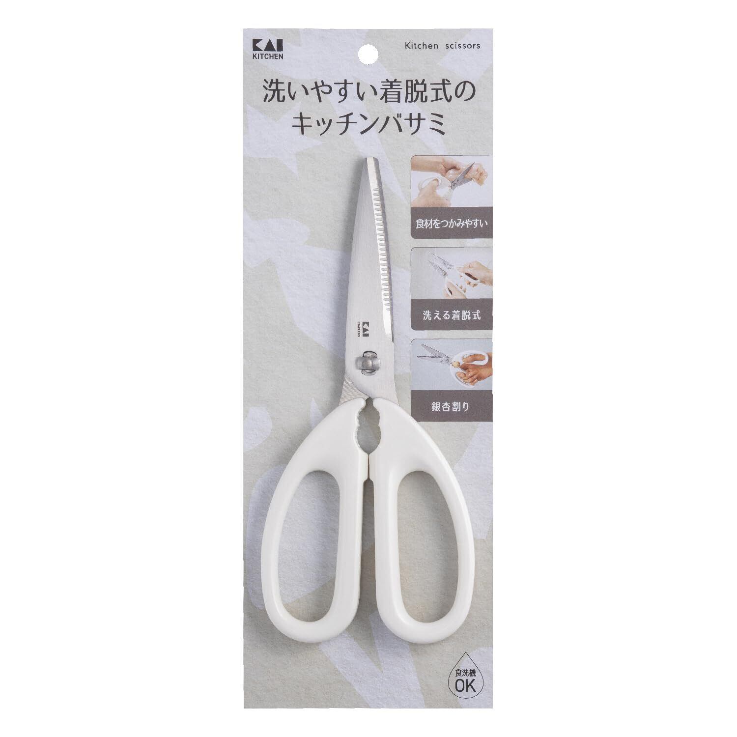 【新着商品】貝印(Kai Corporation) KAI 食材 を つかみながら 切る 溝付き刃 の キッチン ハサミ はさみ 鋏 銀杏 割り 着脱式 セパレート タイプ 食洗機 対応 ホワイト KAI KITCHEN DH8004 | asaRulu0511