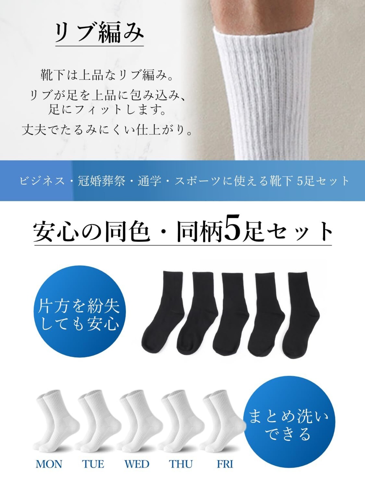 [grannysmith] 靴下 ソックス メンズ ビジネス 抗菌 消臭 フィット感 吸汗 吸水 5足セット オールシーズン 通勤 通学 24-28