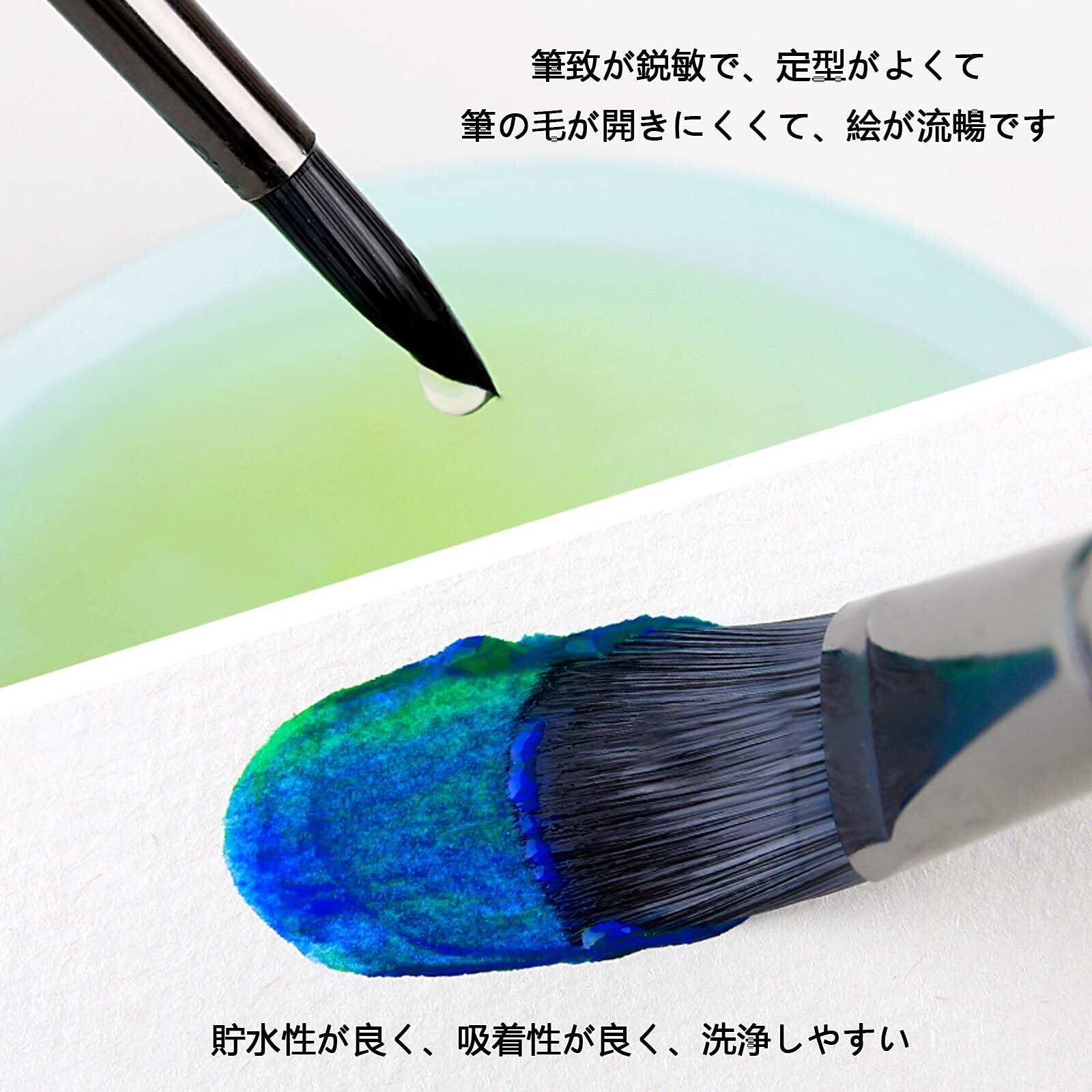 【優れた素材】絵筆は高品質のナイロン毛で作られており、毛が均一で、柔軟性があり、弾力性があり、より滑らかな絵が描けます。 また、筆セットのハンドルは、高品質の木製材料で作られており、頑丈で耐久性があり、コーティングされた表面で、保持するために快適で、描画が疲労しやすいだけでなく、ブラシのより良い保護、寿命を延ばすことはありません。