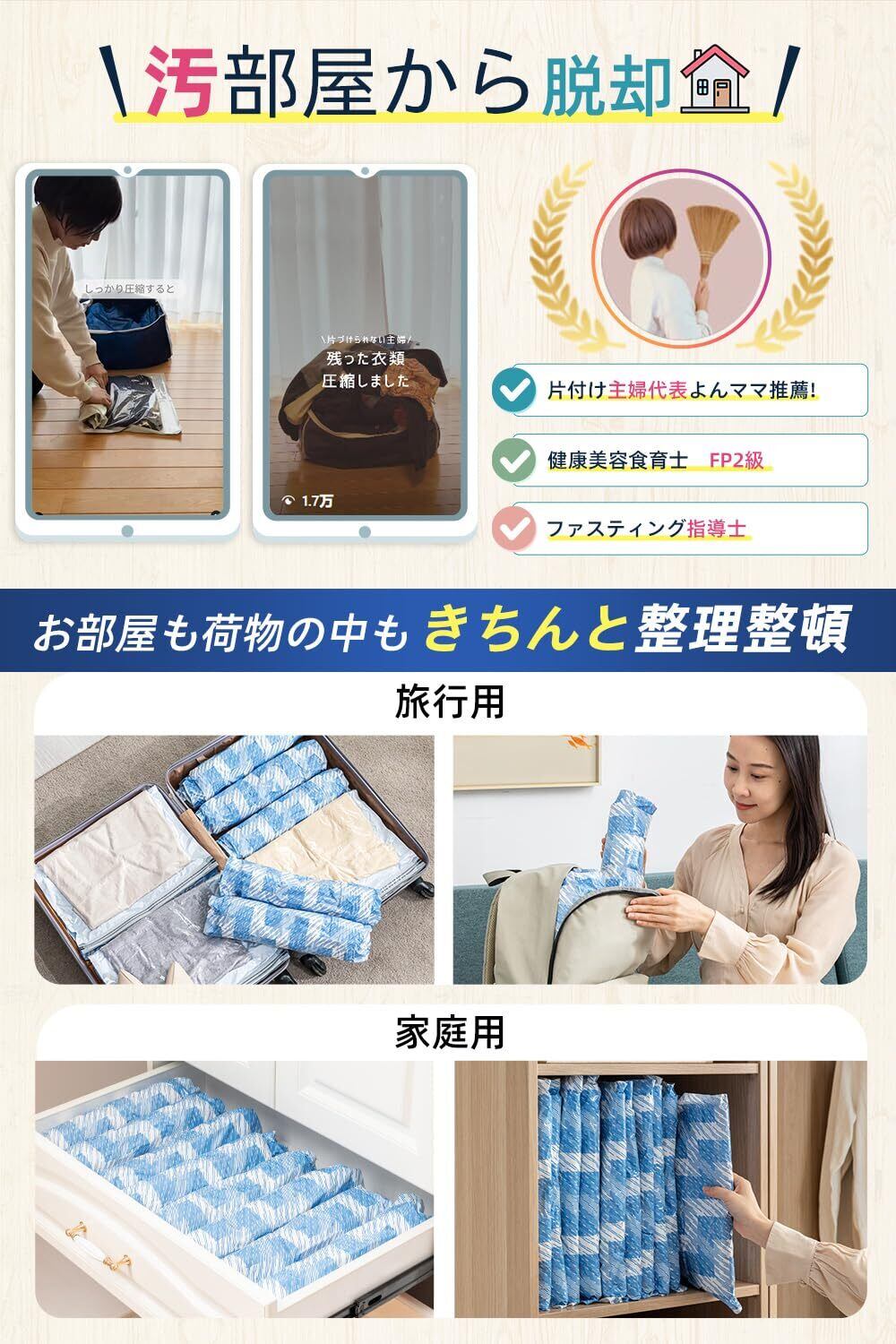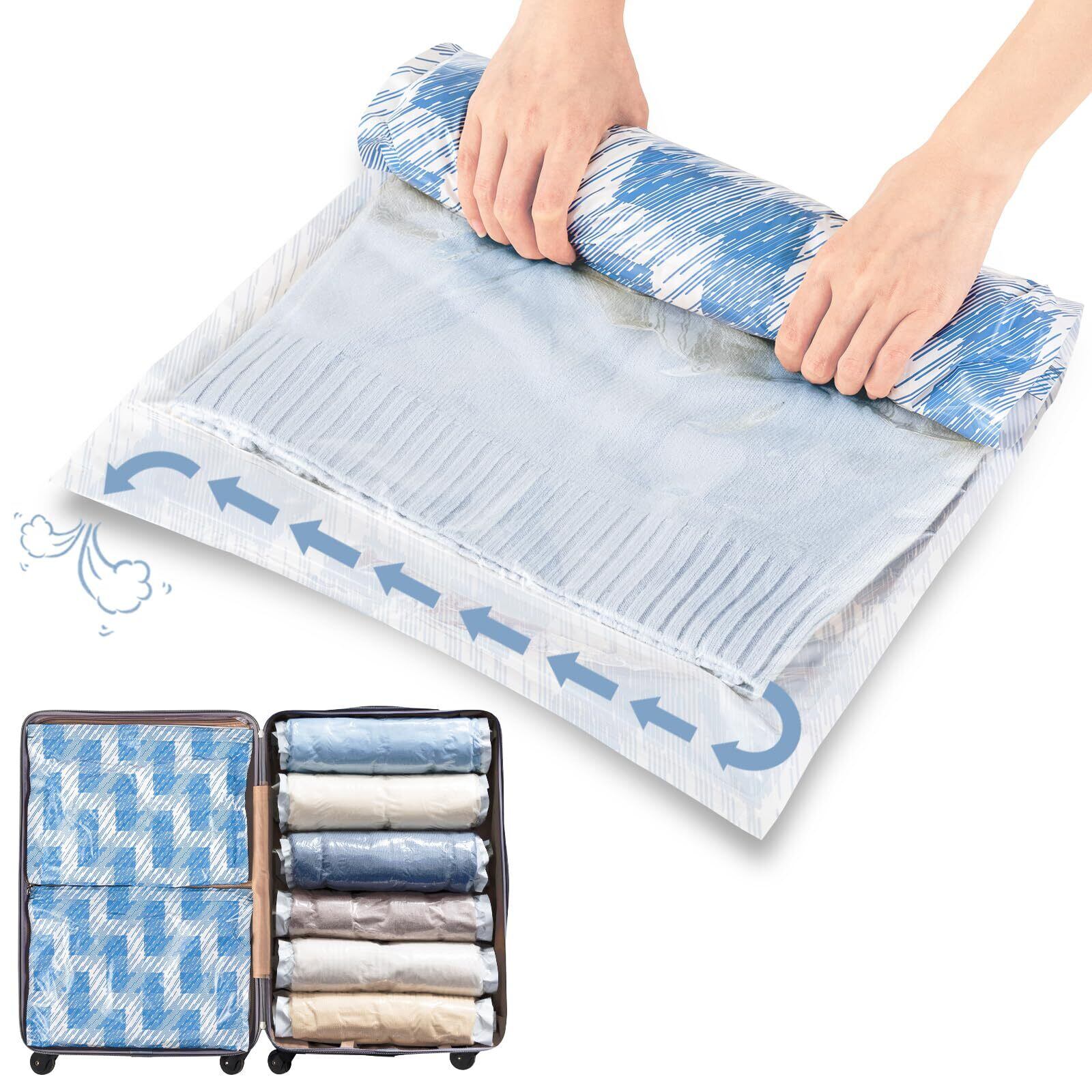 【在庫セール】【高級整理収納アドバイザー監修】VELMADE 圧縮袋 旅行 衣類圧縮袋 手巻き 真空あっしゅくバッグ 衣類収納 下着 ふとん ポンプ不要 押すだけ 省スペース 再利用可能 小物収納 家庭用 引越し 出張 修学 旅行用 Lサイズ40 x 60 cm XLサイズ45 x 70 cm 12枚入 ブルー | asaRulu0511