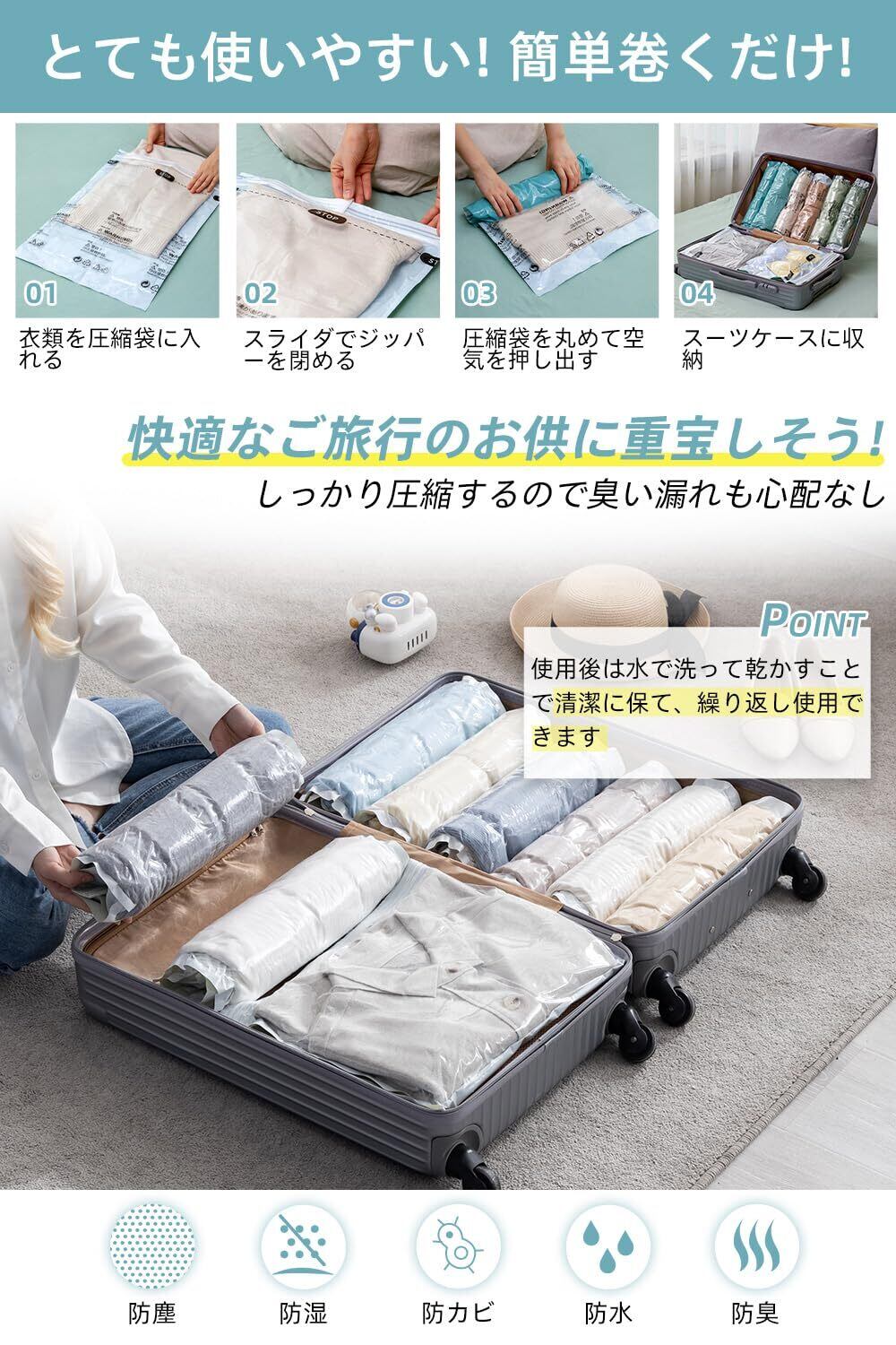 様々なシーン:寝具、タオル、衣類、化粧品、下着などの小物を収納できる圧縮袋で、旅行や出張に最適です。特に旅行の際は、きれいな服を分類して圧縮できるので、汚れた服ときれいな服を分けるのに適しています。衣類を清潔に保ち、もう旅行の時に大荷物にならずに済みます!特に梅雨時期は、収納した衣類が濡れる心配もありません