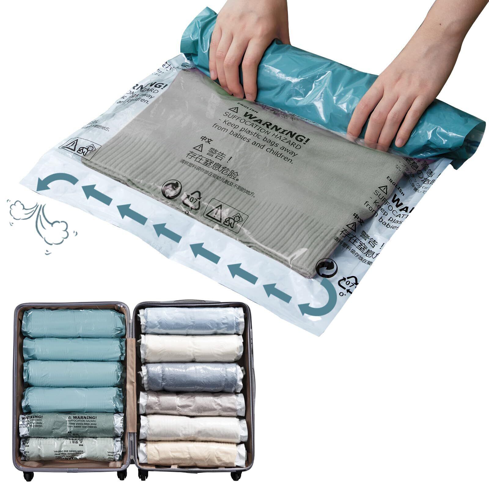 【高級整理収納アドバイザー監修】VELMADE 圧縮袋 旅行 衣類圧縮袋 手巻き 真空あっしゅくバッグ 衣類収納 下着 ふとん ポンプ不要 押すだけ 省スペース 再利用可能 小物収納 家庭用 引越し 出張 修学 旅行用 Lサイズ40 x 60 cm XLサイズ45 x 70 cm 12枚入 グリーン