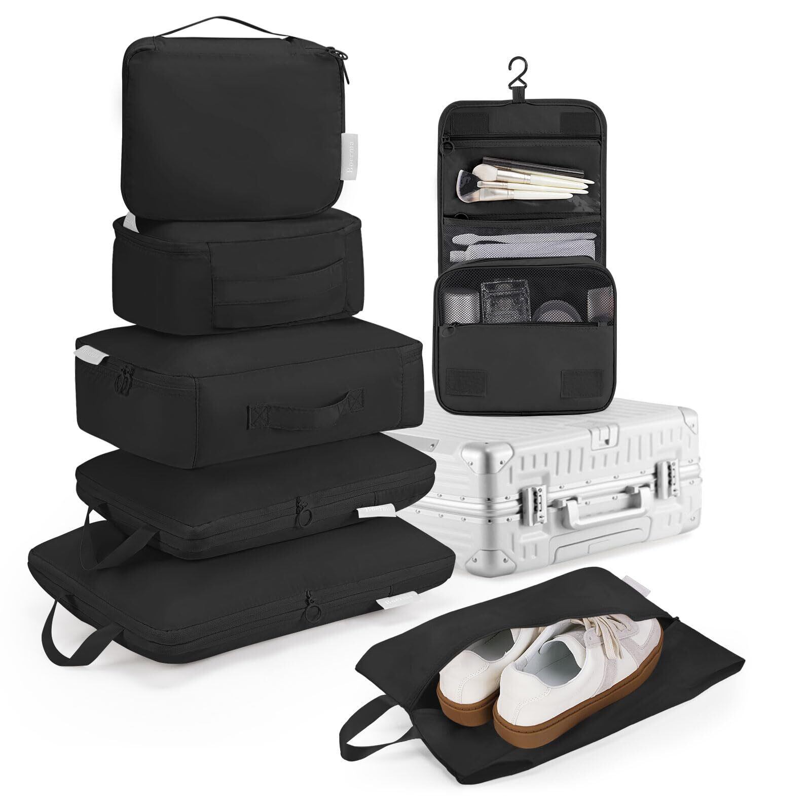 【より簡単な旅行&分類整理】7点圧縮トラベルポーチがあるので、細かく仕分けができて収納力です。旅行用衣類を収納するだけでなく、洗面用具、化粧品、汚れた服やきれいな服などを分けて収納することもできます