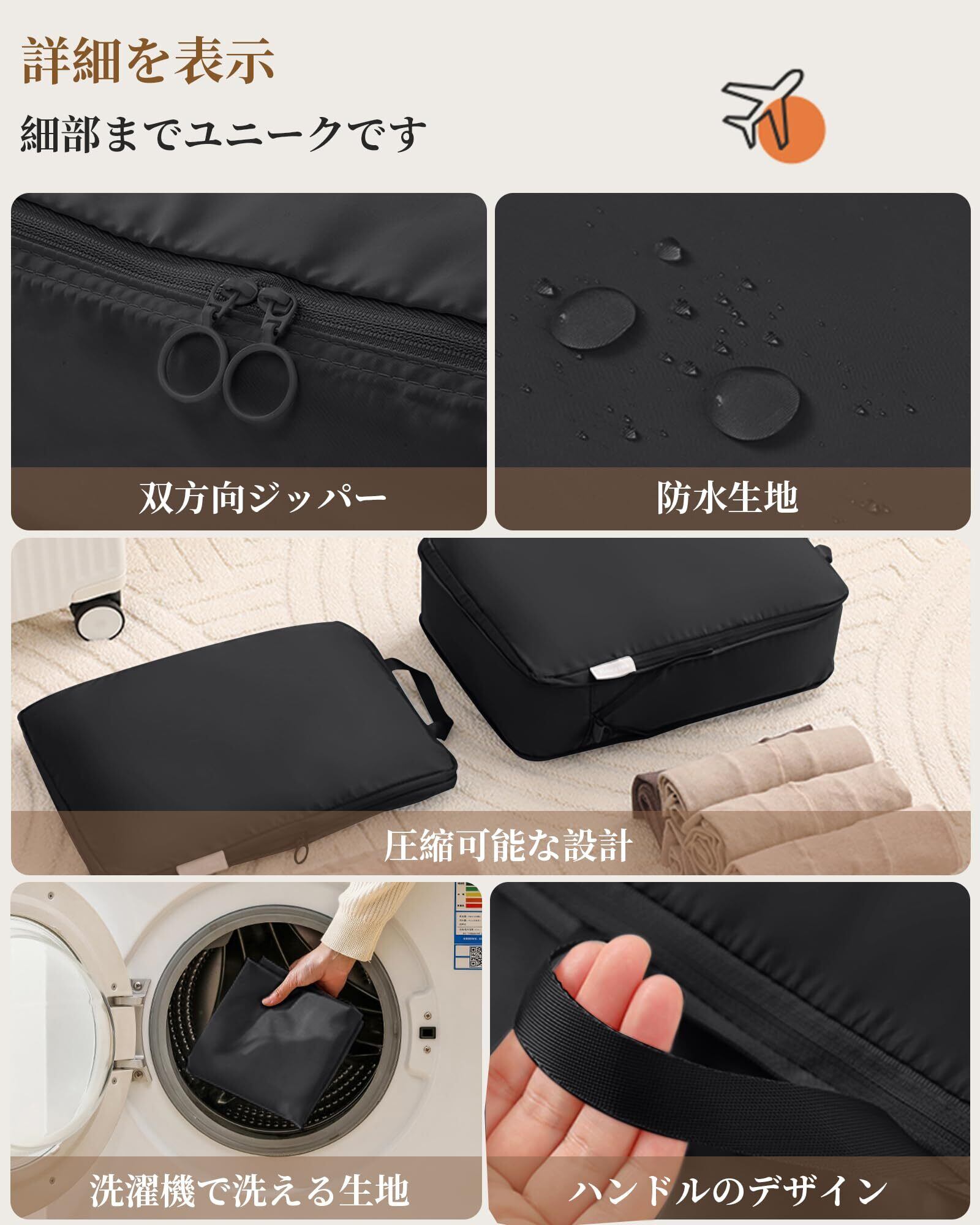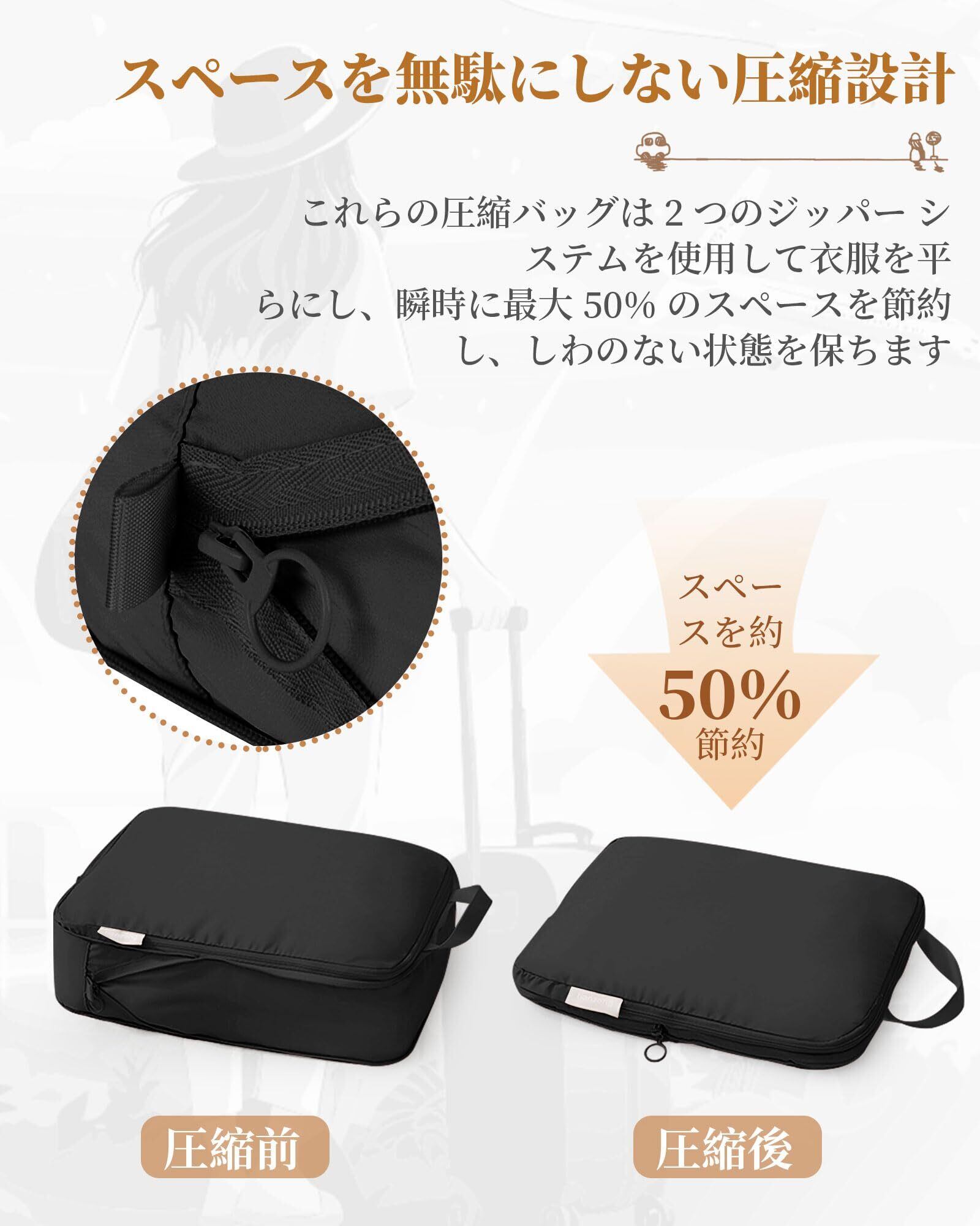 【数量限定】トラベルポーチ 圧縮 7点セット 旅行用ポーチ パッキングポーチ スペース40%節約 圧縮袋 旅行 圧縮バッグ スーツケース仕分け 軽量 丈夫なファスナー圧縮 出張 旅行 便利グッズ ブラック | asaRulu0511