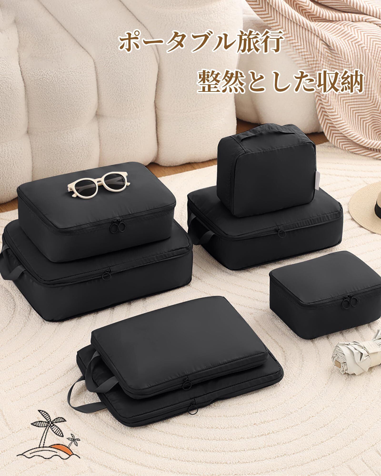 トラベルポーチ 圧縮 7点セット 旅行用ポーチ パッキングポーチ スペース40%節約 圧縮袋 旅行 圧縮バッグ スーツケース仕分け 軽量 丈夫なファスナー圧縮 出張 旅行 便利グッズ ブラック