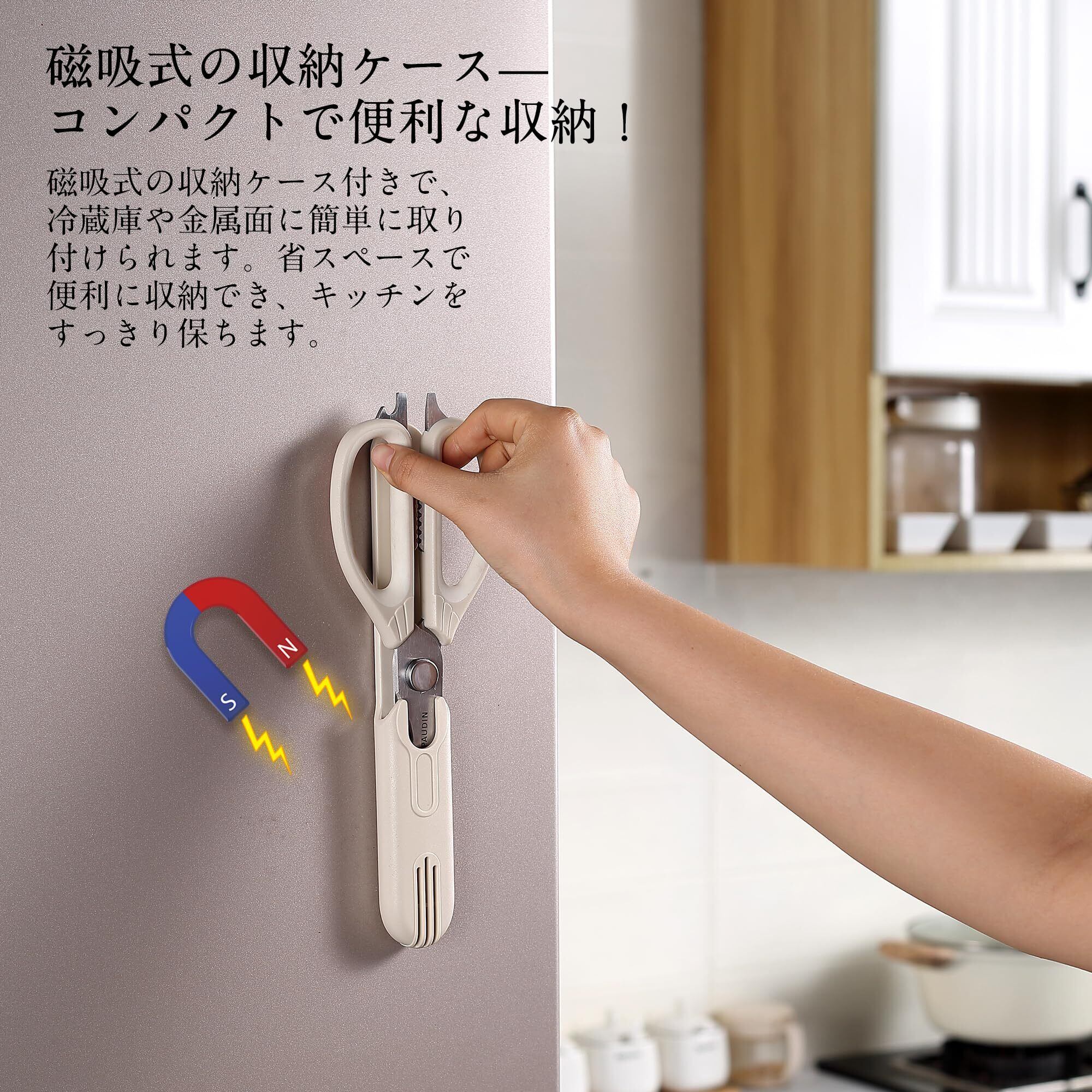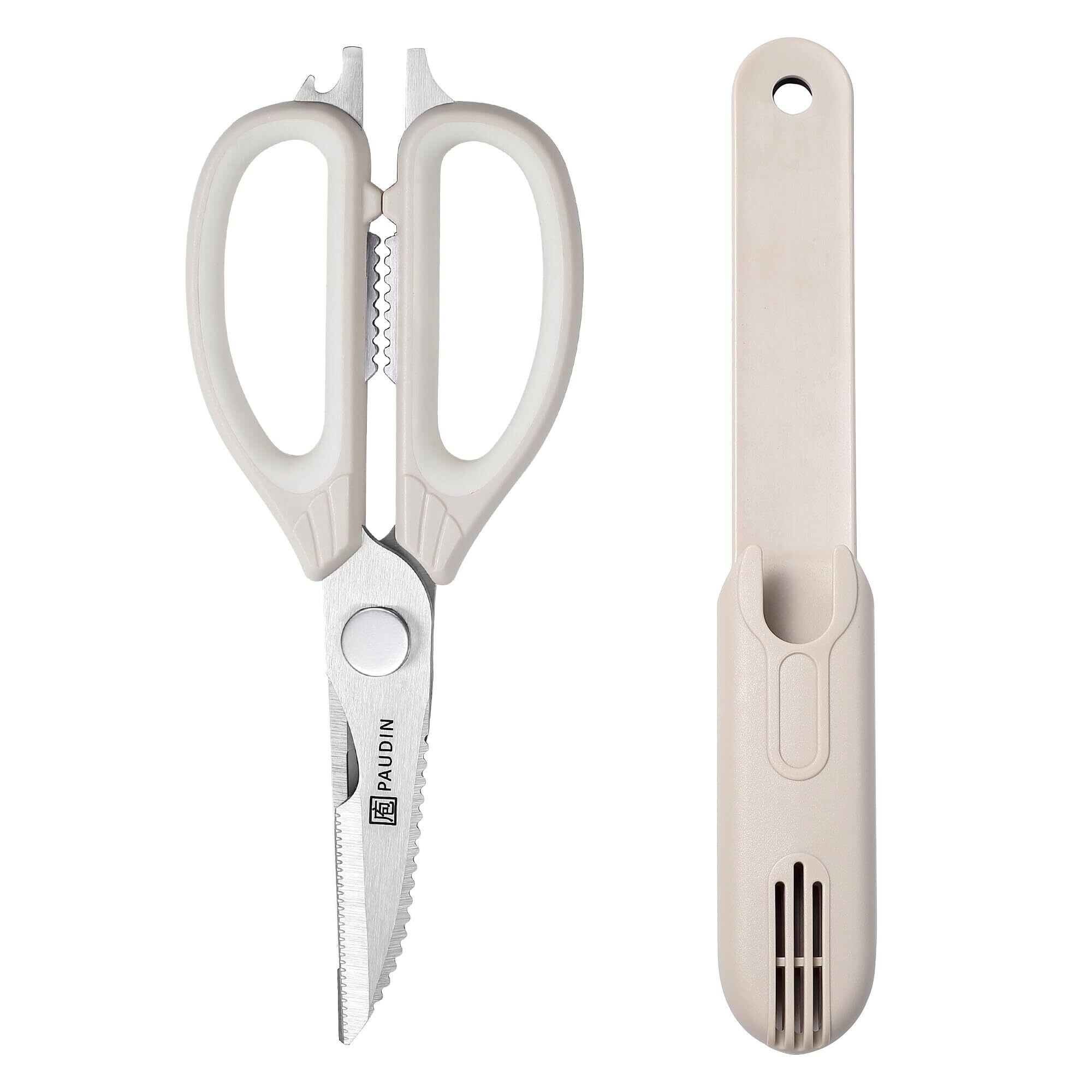 PAUDIN キッチンバサミ 料理はさみ 多機能キッチンハサミ 磁吸式収納ケース付き 分解 食洗機対応 ステンレス 錆びにくい ホワイト