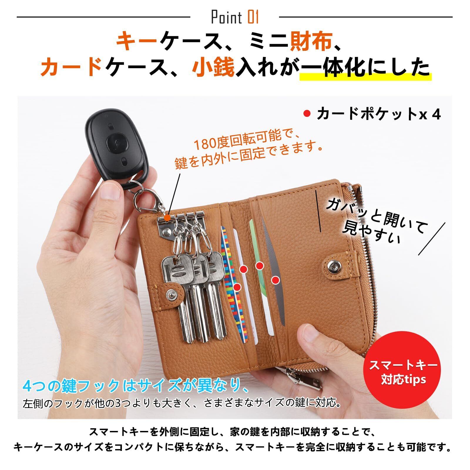 [imeetu] キーケース ミニ財布 マルチケース メンズ レディース スマートキーケース 本革 4連フック付き コンパクト 人気 便利 財布 カードケース 小銭入れ 多機能 軽量