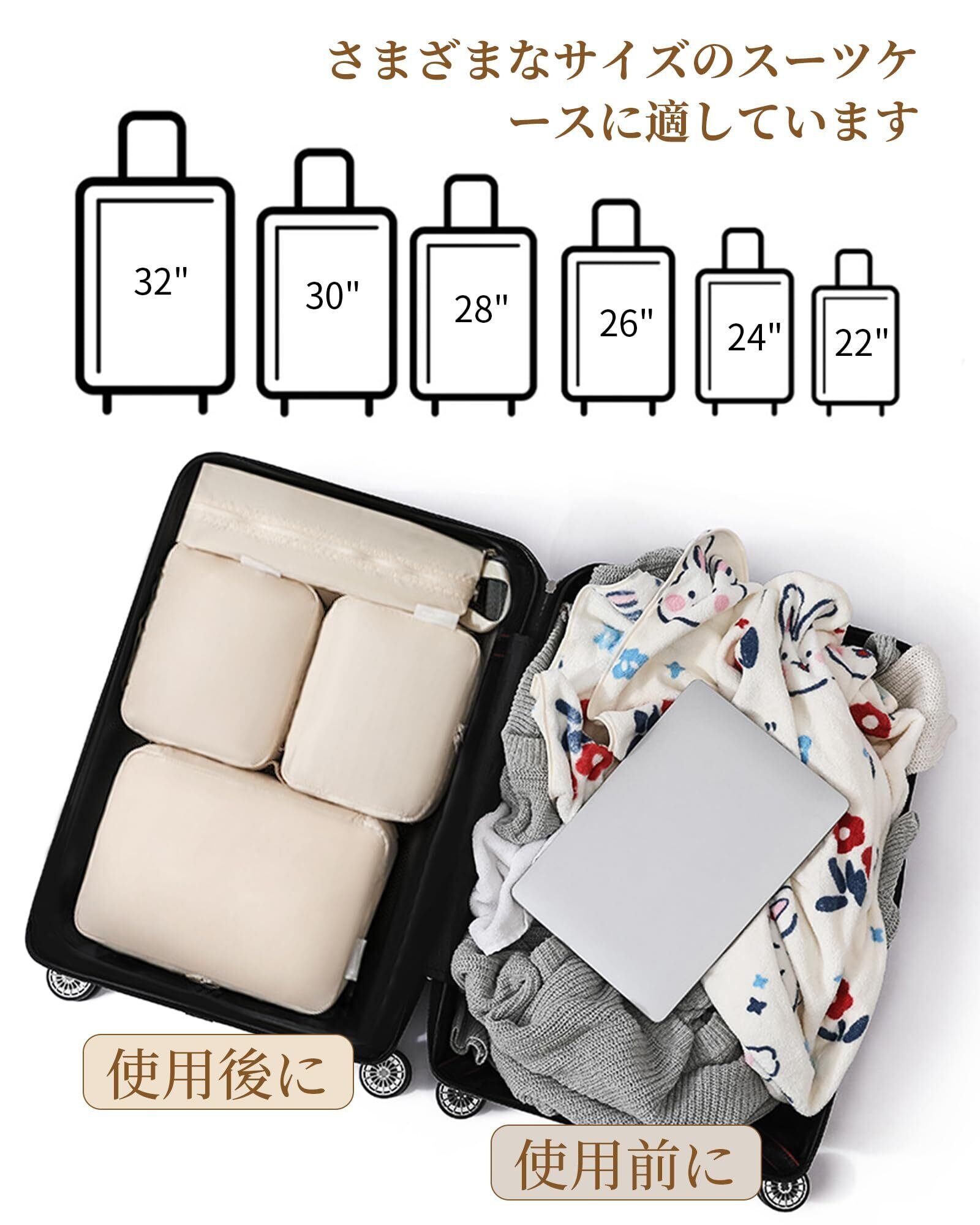 【より簡単な旅行&分類整理】7点圧縮トラベルポーチがあるので、細かく仕分けができて収納力です。旅行用衣類を収納するだけでなく、洗面用具、化粧品、汚れた服やきれいな服などを分けて収納することもできます