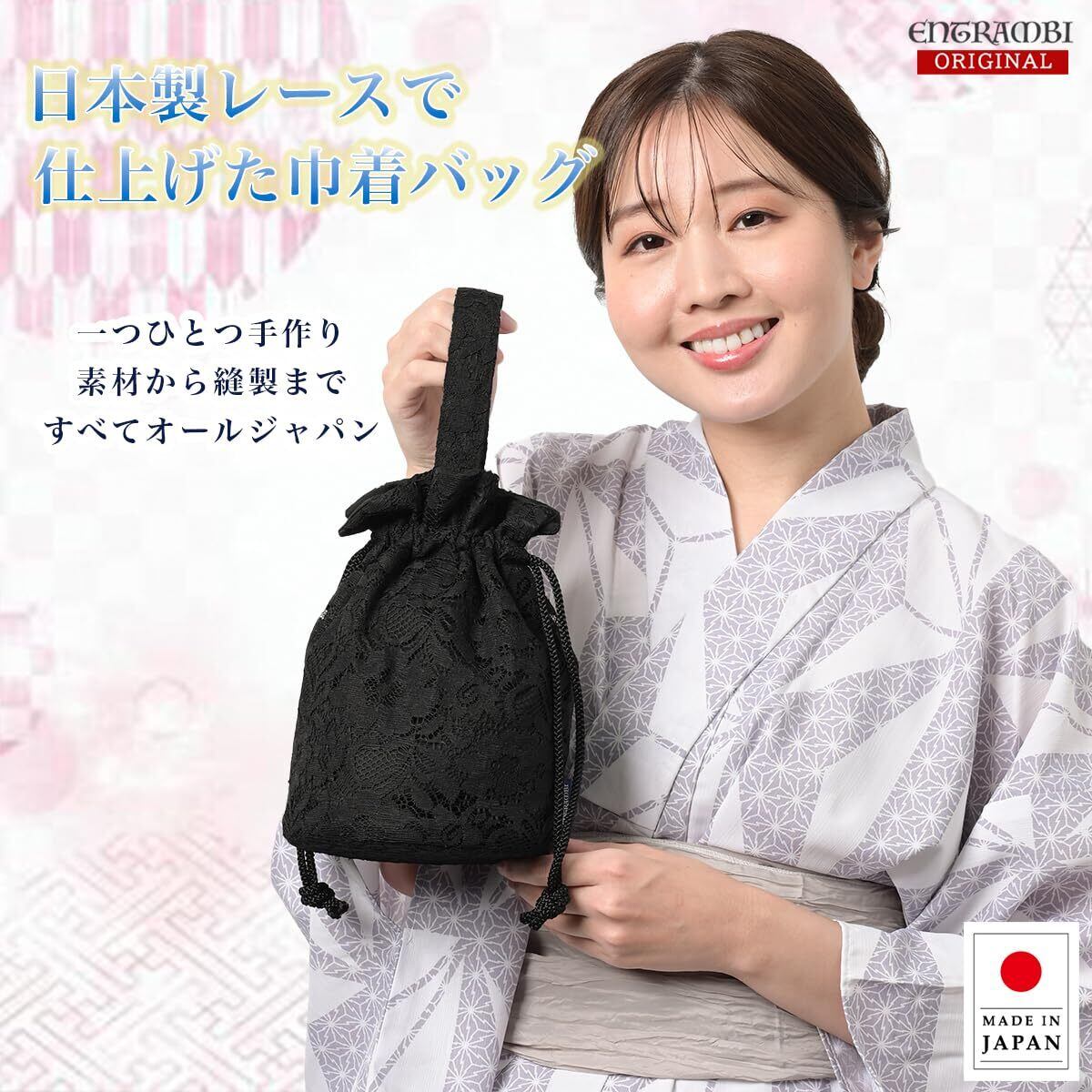 [ENTRAMBI] 日本製 レース巾着バッグ 巾着 バッグ レース 花柄 レディース 浴衣 着物 MADE IN JAPAN