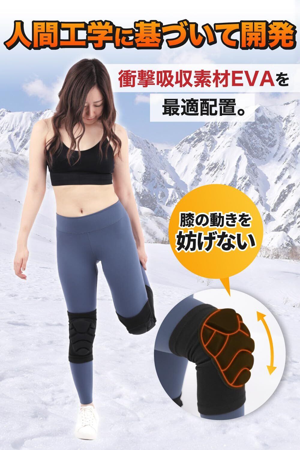 【膝関節をしっかり防御】人体工学に基づいた衝撃吸収素材EVAの最適配置により、滑走時の膝の動きを妨げず、膝関節を最大限防御します。