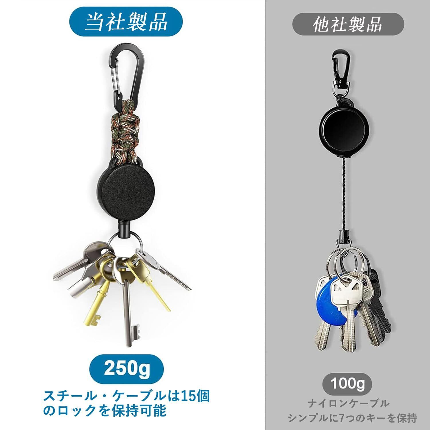 巻き取り式スチールコード:セット内容:2個セット、巻き取り式キーホルダー2本セットには、最大60cmまで伸ばせるステンレススムースPVCコーティングスチール製の直径1mmスチールコードが内蔵されています。 内蔵された強力なスプリングは250gの荷重に耐えることができ。