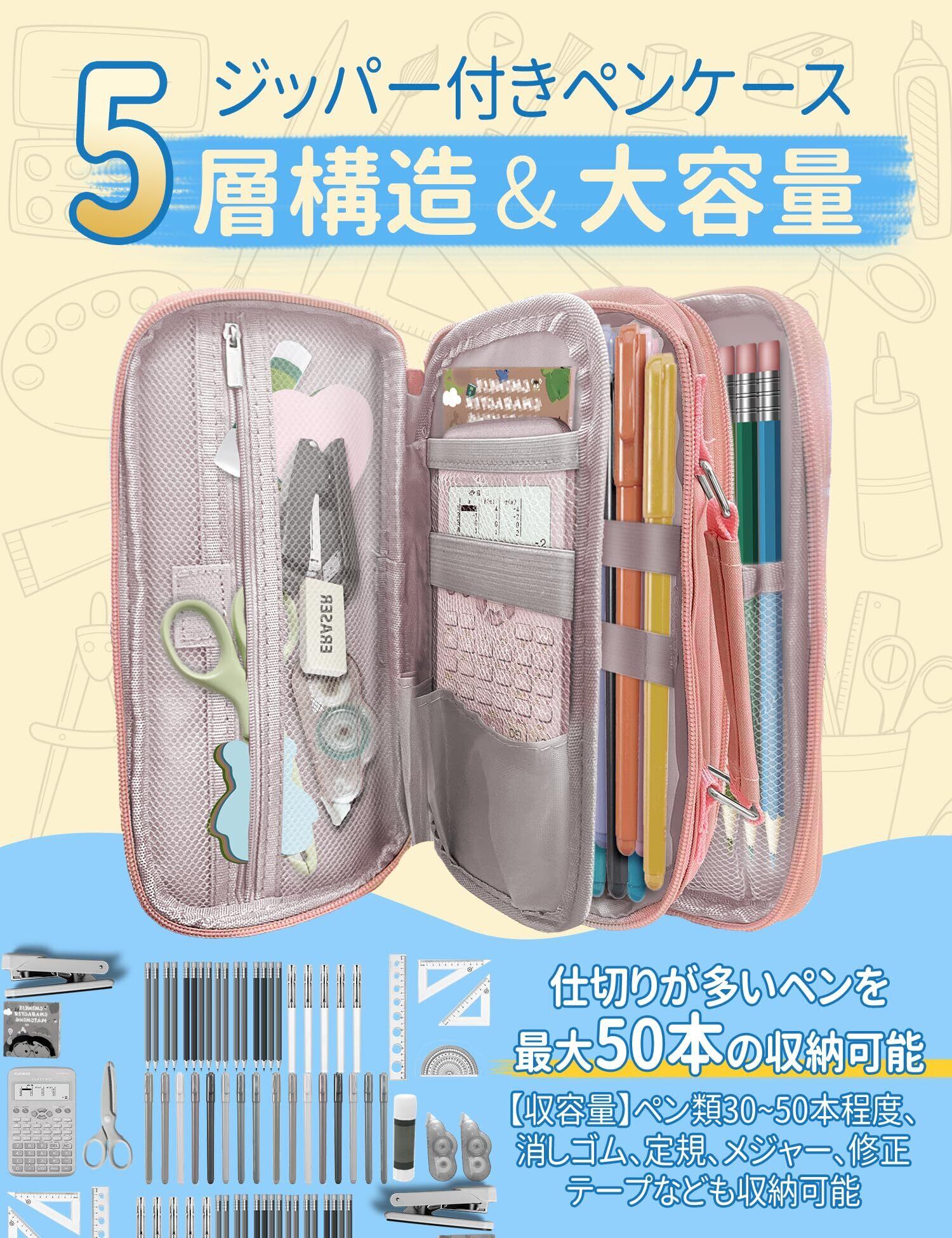【大容量のおしゃれ 筆箱】ペンケース 大型 サイズ :24cm*7cm*11cm、この ペンケース は、50本のペンをスッキリ収納できる大容量仕様。【マルチファンクション】化粧ポーチとしても使いやすい(化粧品、化粧道具収納OK)、勿論 USBメモリ、ハートディスク、記憶装置,ポータブルストレージ、充電部品、薬品などの収納も全然OK.通学や通勤に最適なアイテムです。
