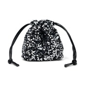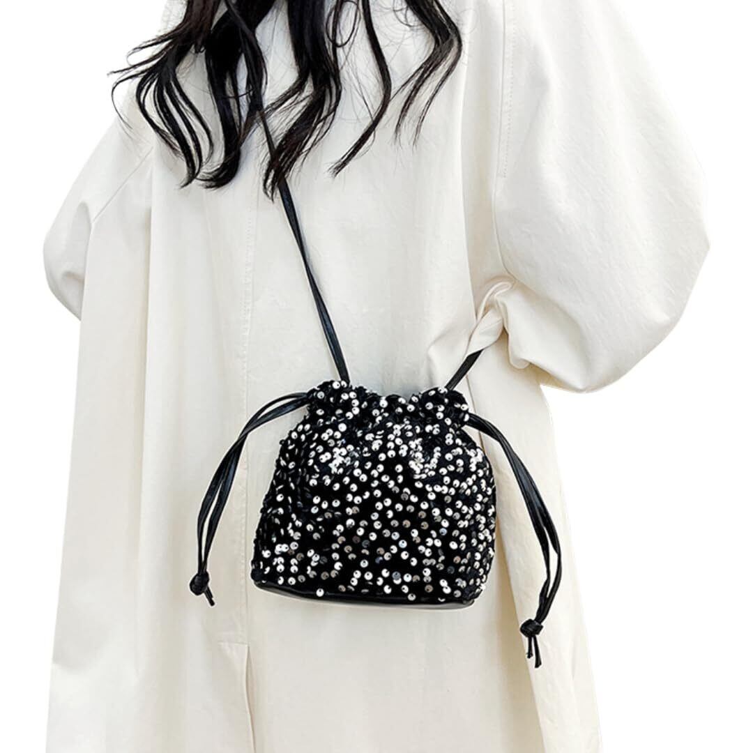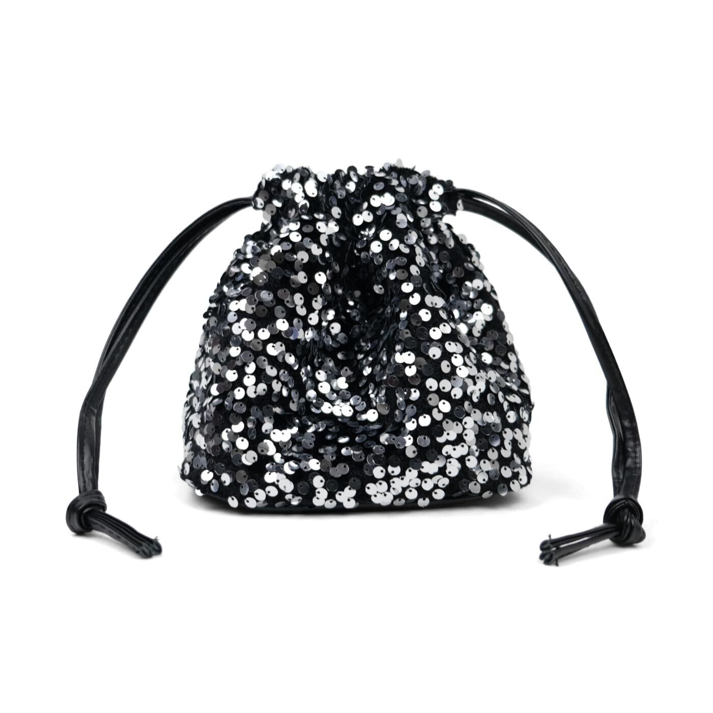 [NAMEOF] スパンコール 巾着 バッグ ミニ ハンドバッグ ショルダーバック オケージョンバッグ レディース ブラック シルバー 軽量 パーティー キラキラ 斜めがけ 肩掛け