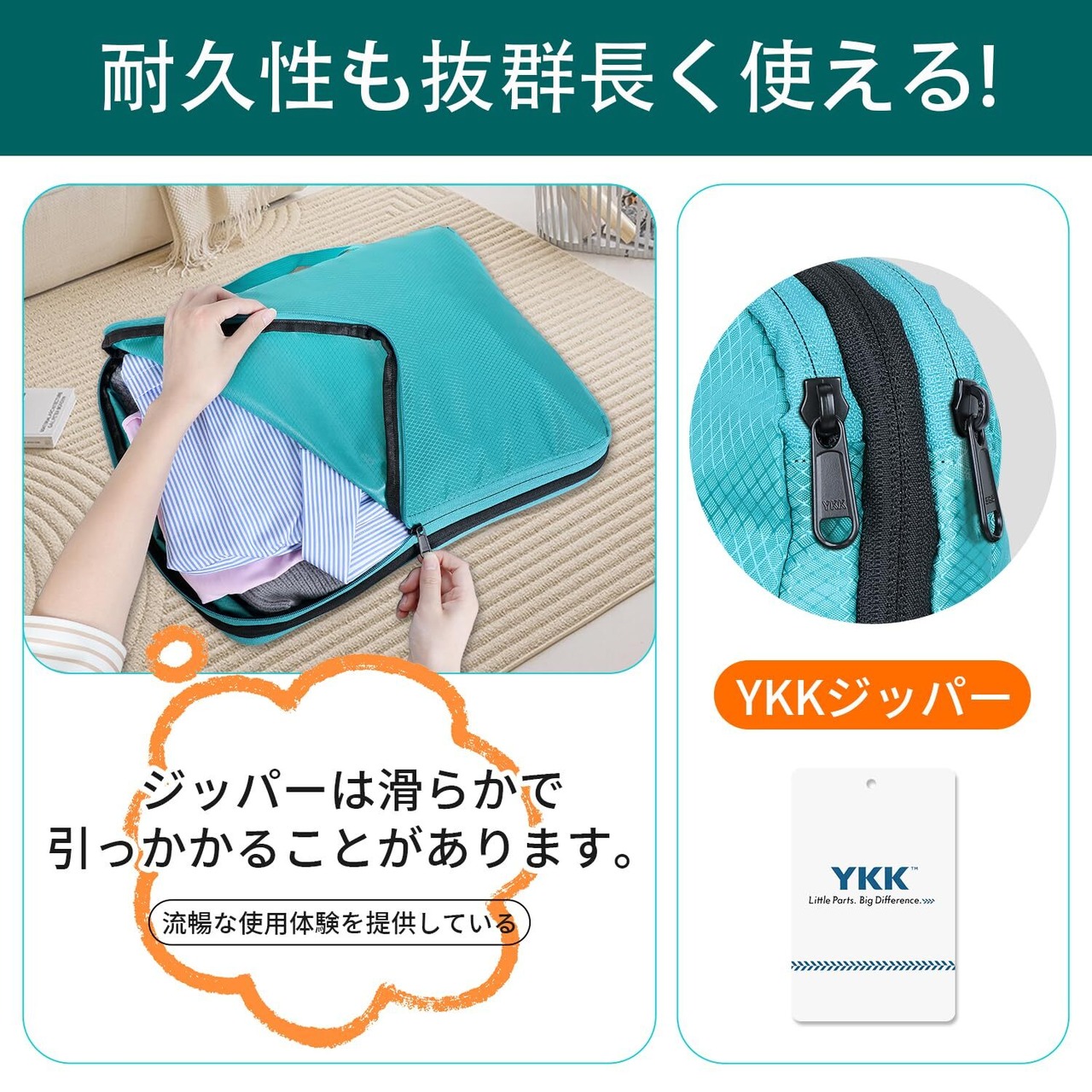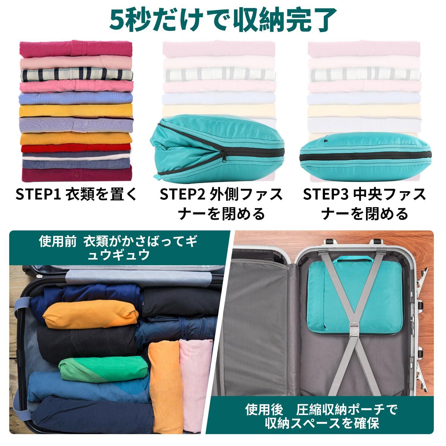 【省スペース】ファスナーのデザインで外側ファスナーを閉めるだけで圧縮し、スーツケース内のスペースを約50%節約できます。旅行用圧縮袋でより多くの衣類を収納でき、スーツケースの中を綺麗にスッキリ整理できます。安心で快適な旅行や出張を実現します。