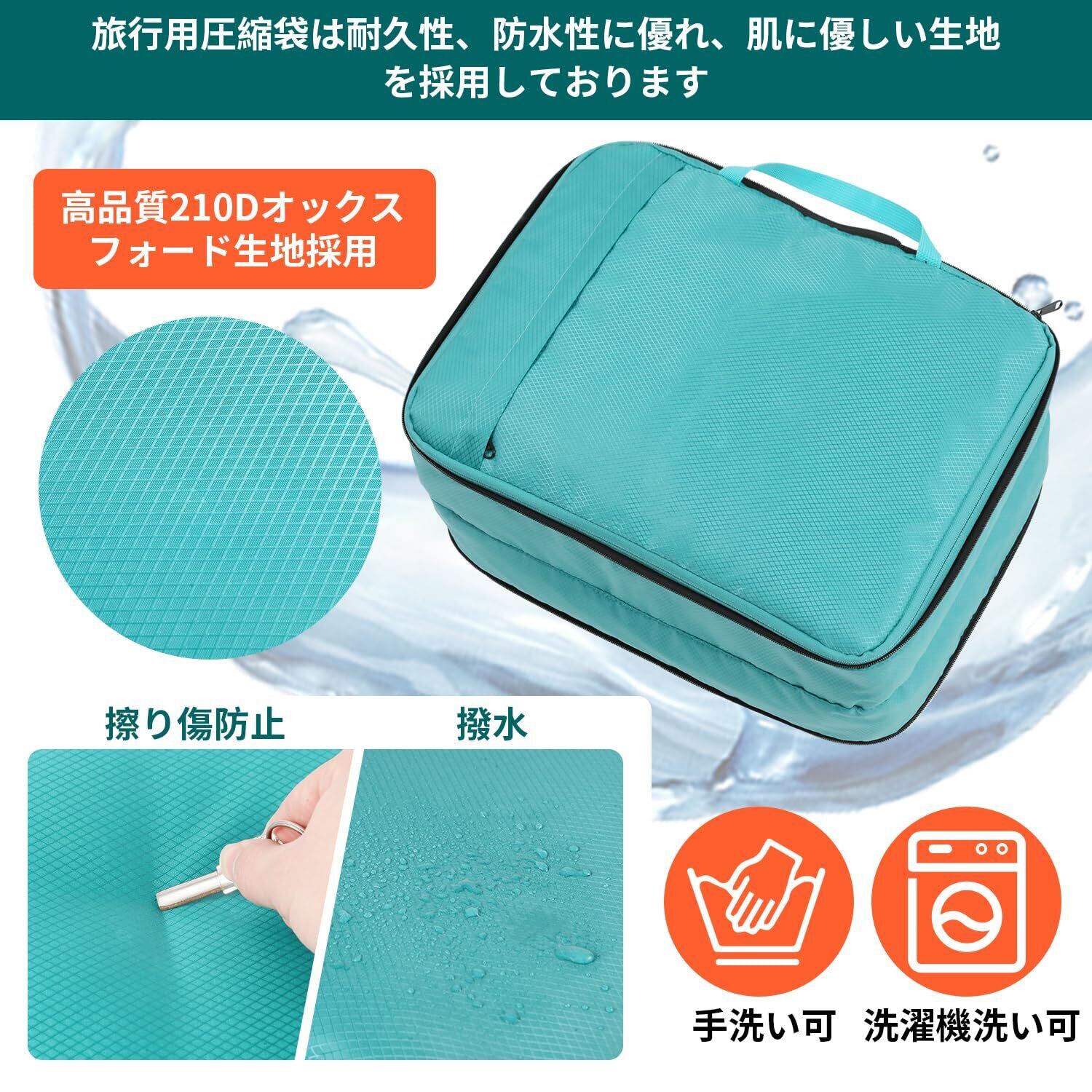 【材質】旅行用圧縮袋は高品質の210Dオックスフォード生地で作られ、防水性、耐久性に優れており、傷つきにくいです。表面は滑らかで水の浸入を防ぐことができます。洗濯機で洗えて、速乾性に優れております。