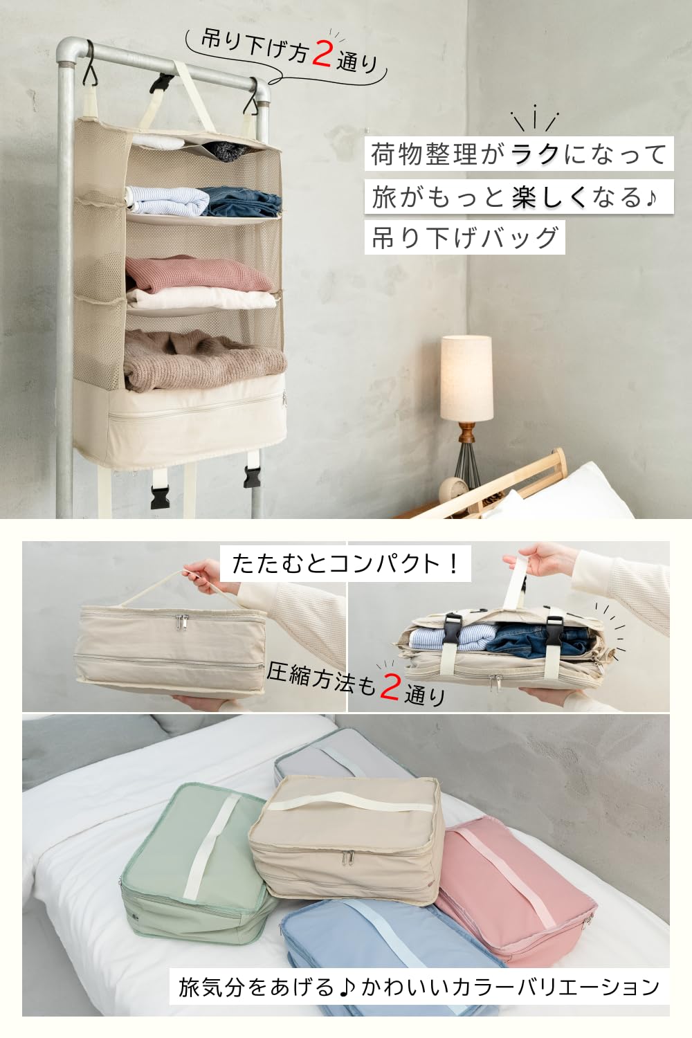 旅がもっと楽しくなる吊り下げトラベルバッグ!荷物が見やすく、整理しやすい!