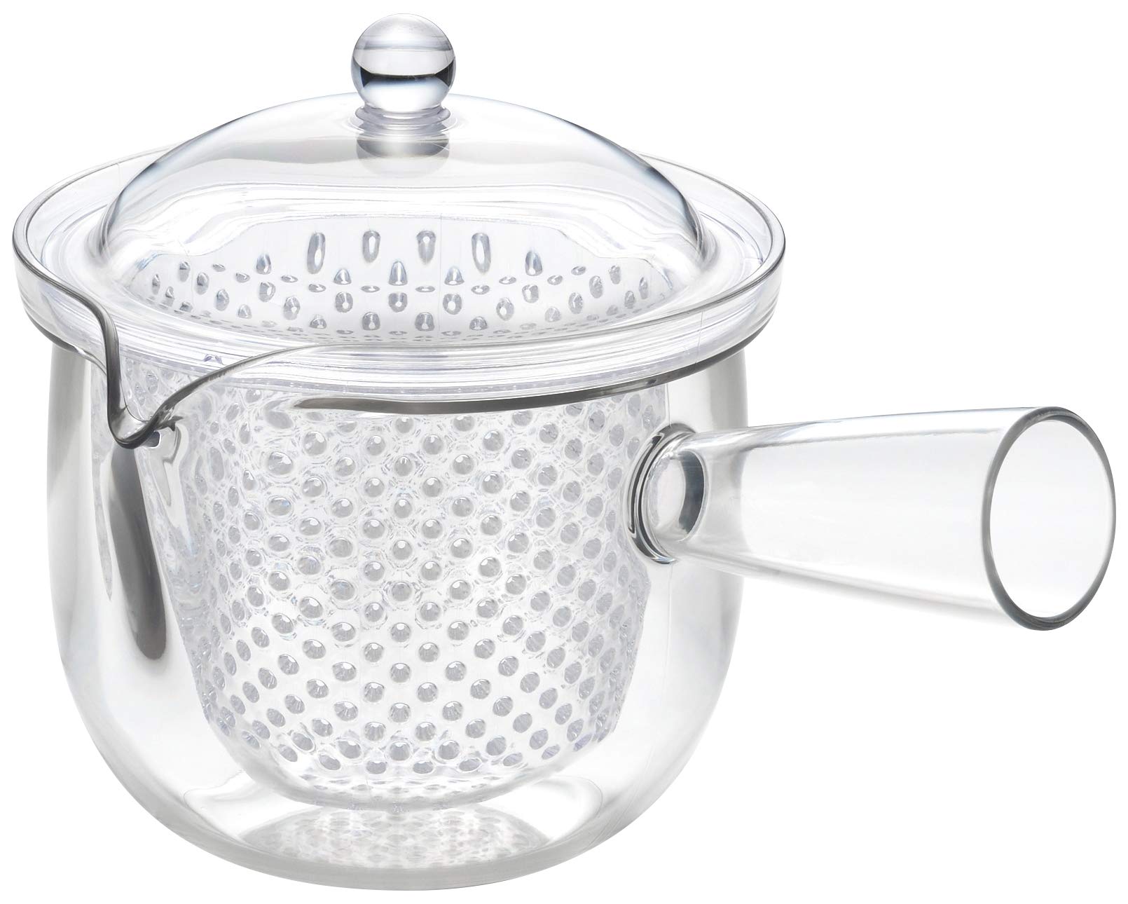 曙産業 ティーポット 急須タイプ L 日本製 横手 透明でお茶の出具合がよく見える プラスチック製で割れにくい 水切れがよく注ぎやすい 目詰まりしにくいプラスチック製ストレーナー クリアティーポット TW-3752 容量:480ml