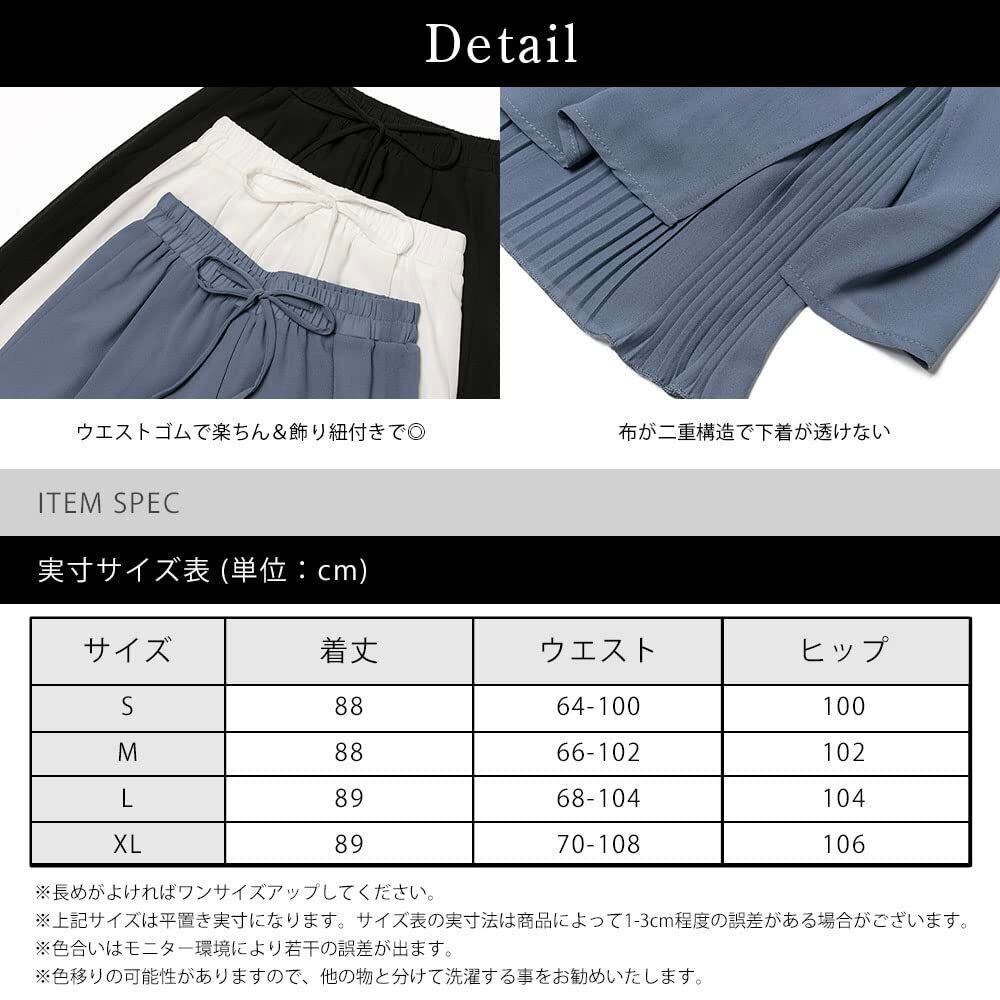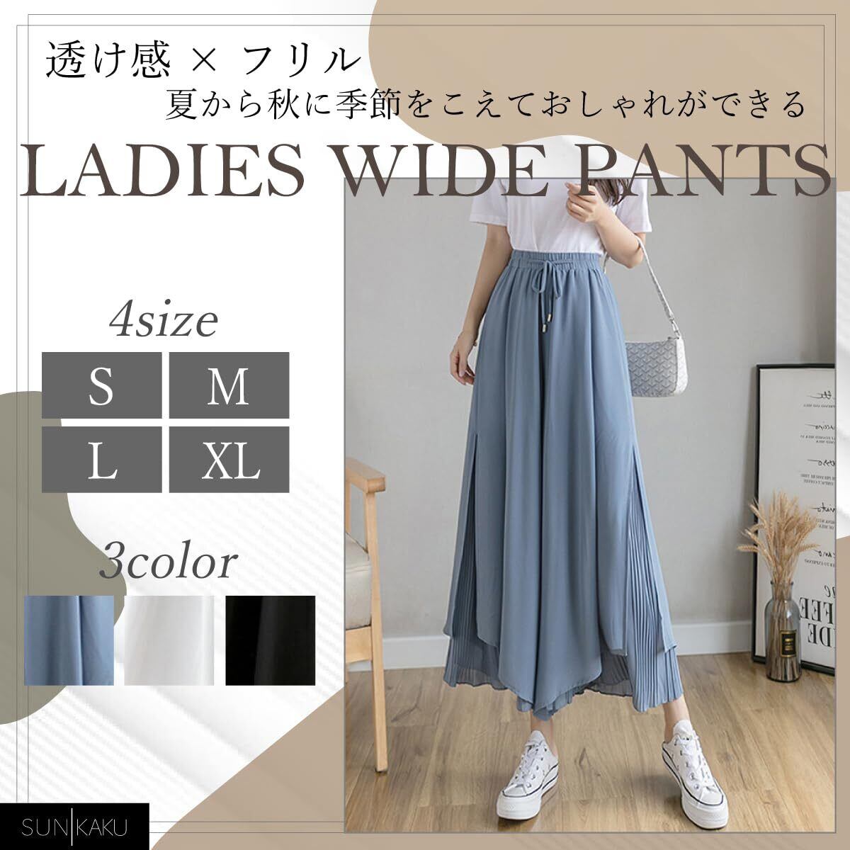 [SUN KAKU] [サンカク]ワイドパンツ レディース 春スカート ガウチョ ロング ギャザー シフォン フレア プリーツ レイヤード 体型カバー ウエストゴム 夏 春 秋
